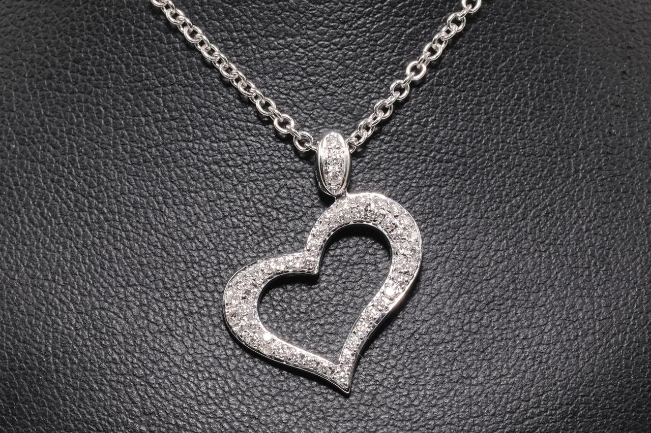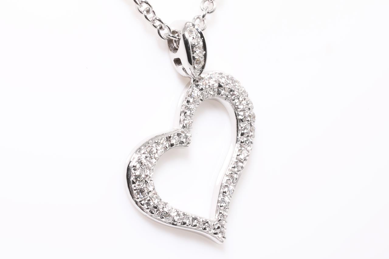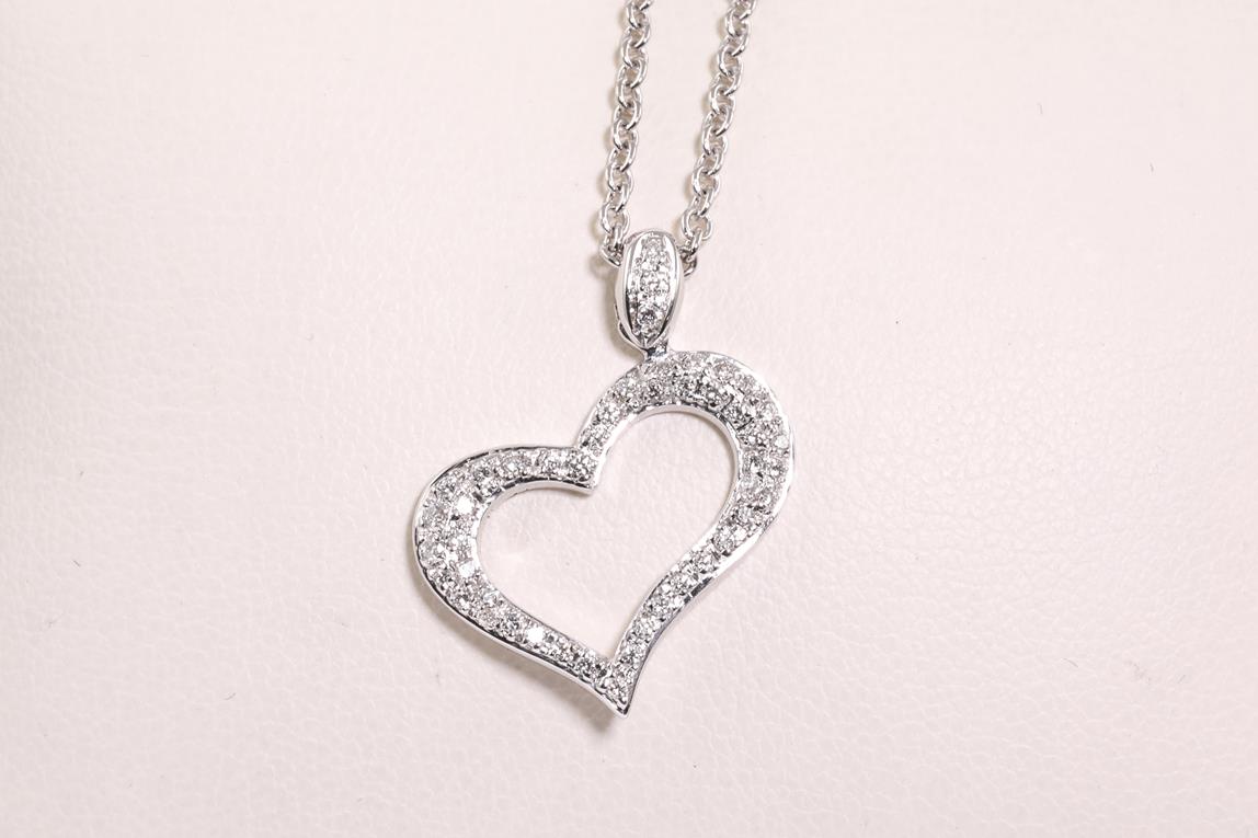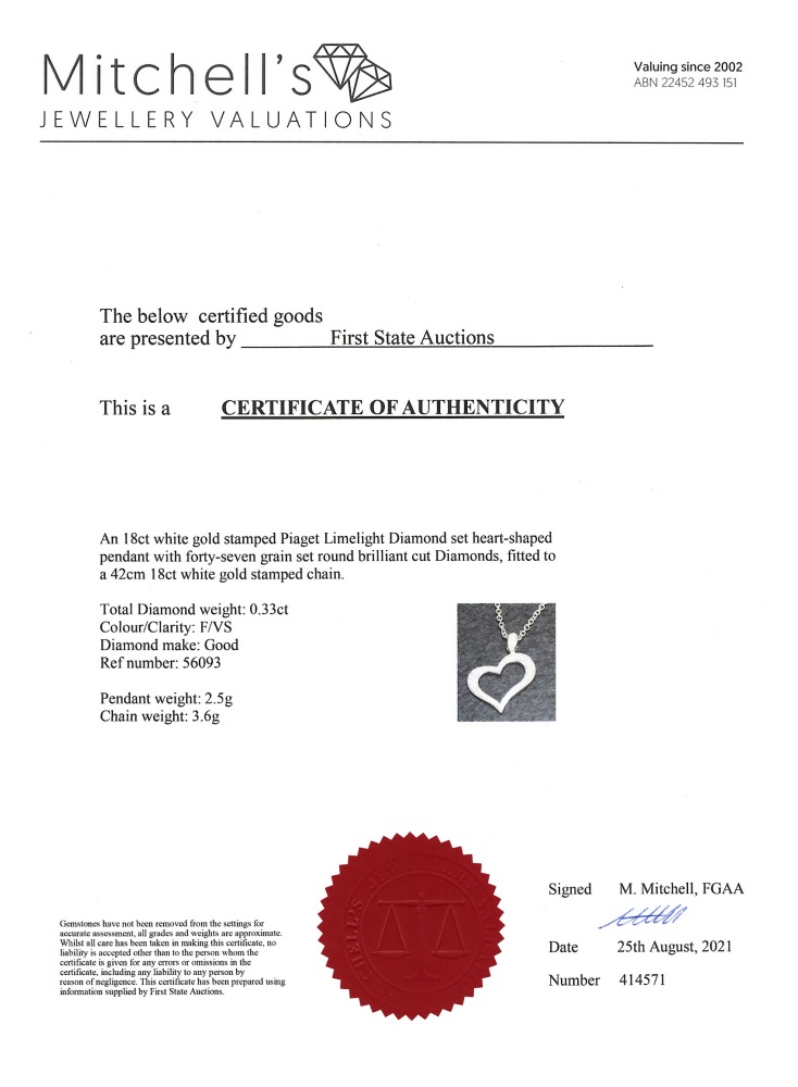 Piaget Limelight heart design pendant with Diamonds totalling approximately 0.33cts (Estimated grading: F VS). 18ct white gold with 42cm chain. With Piaget deteriorated box. Ref# 75591. Weight: 6.1g. With certificate #414571. (Pre-owned)