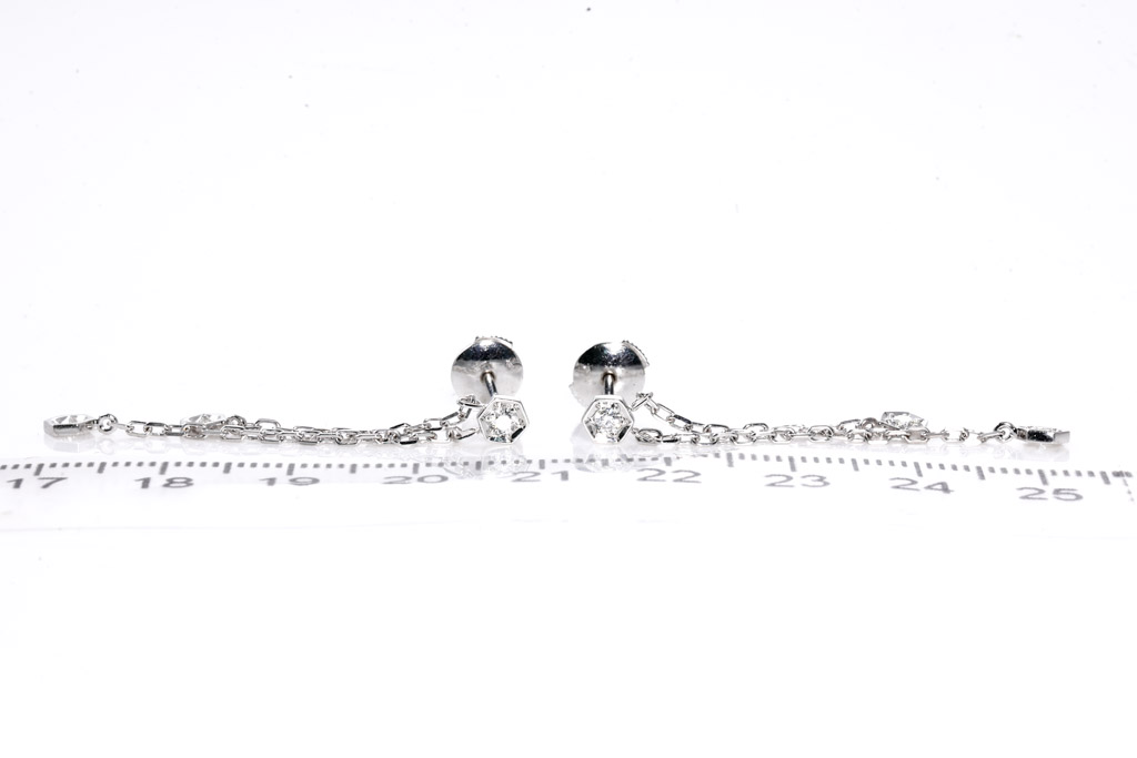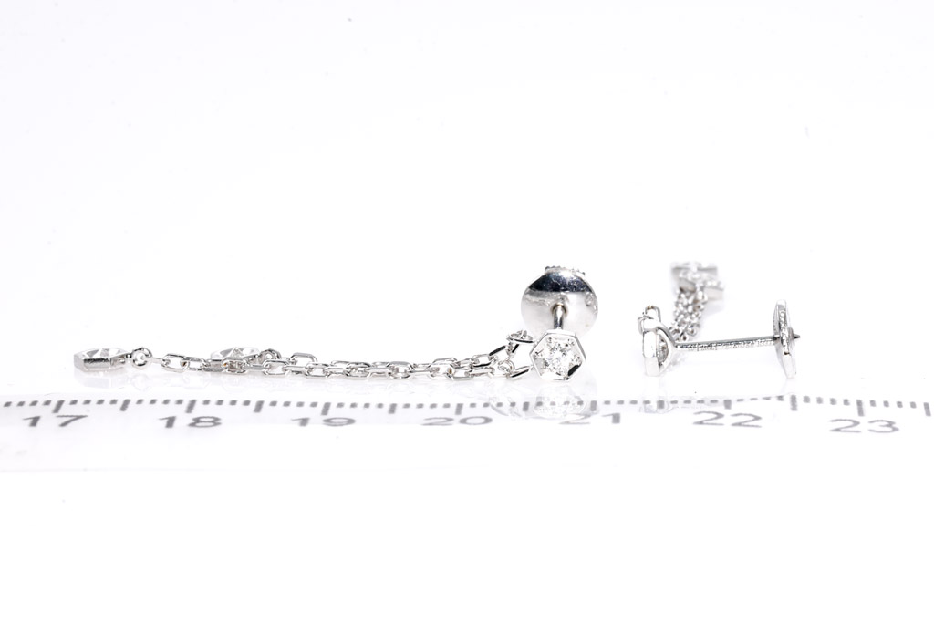 Piaget Magic Garden Diamond dangle earrings with 6 round Diamonds totalling approximately 0.28cts. 18ct white gold with unbranded 18ct white gold secure lock backs. Weight: 2.2g. (Pre-owned)