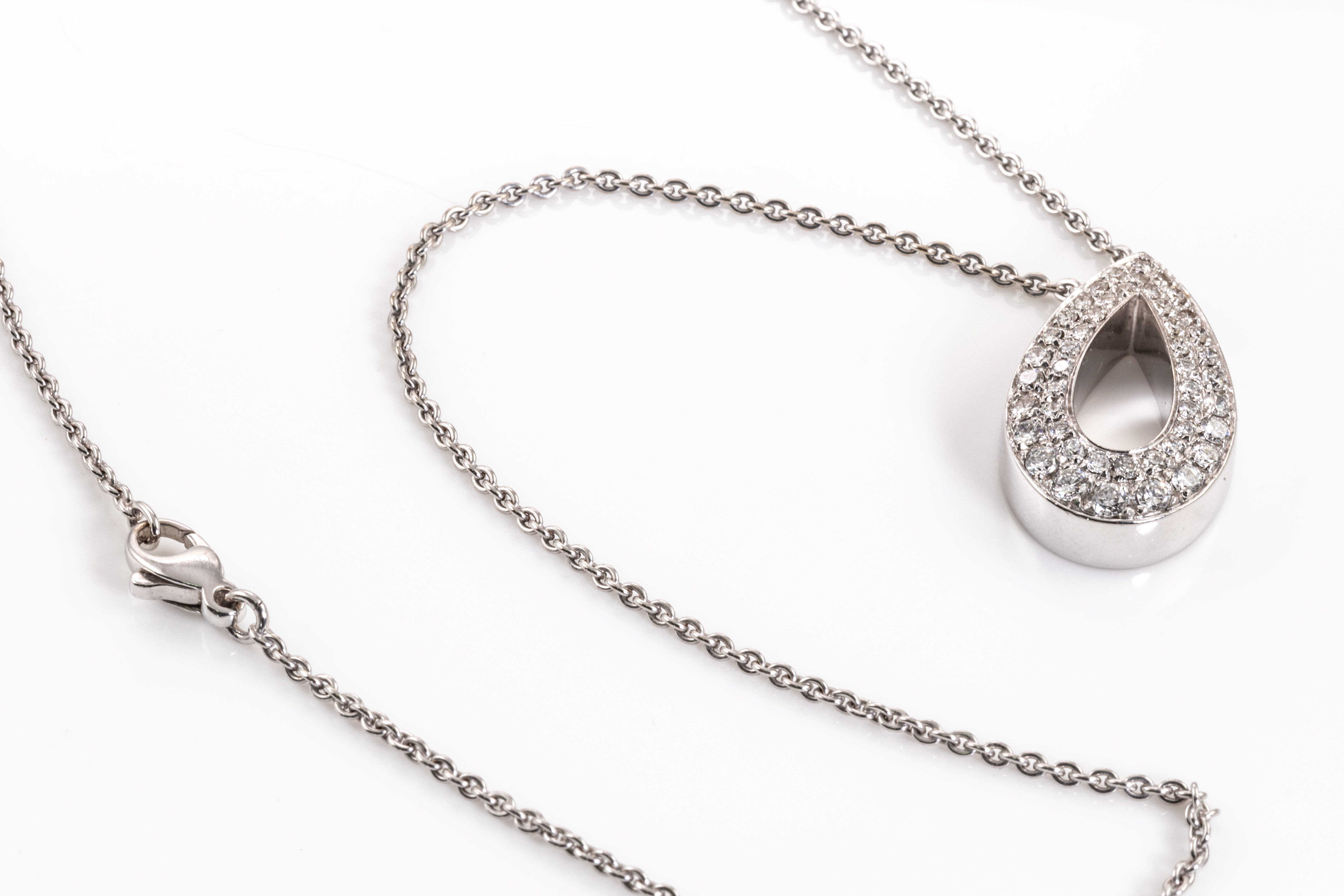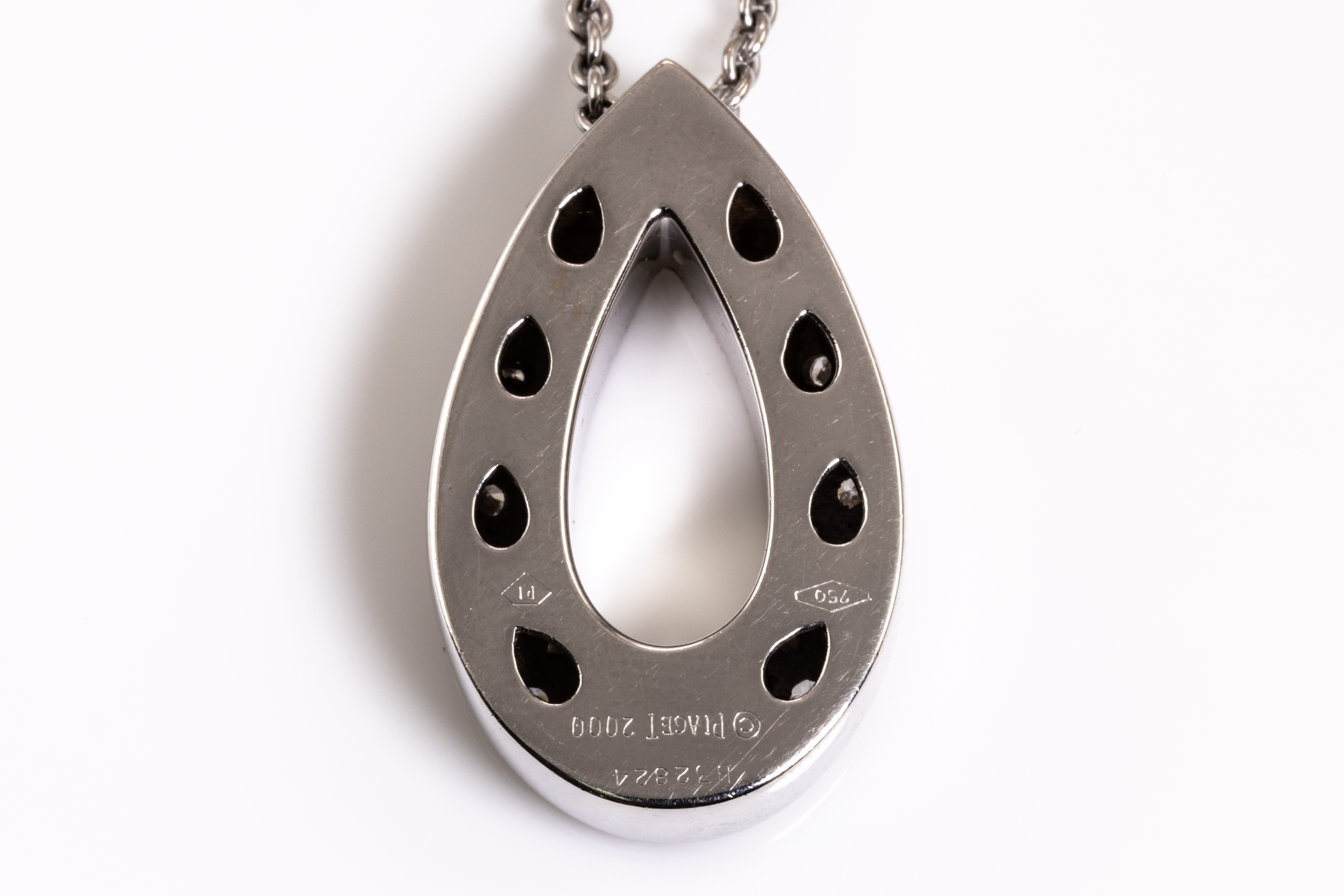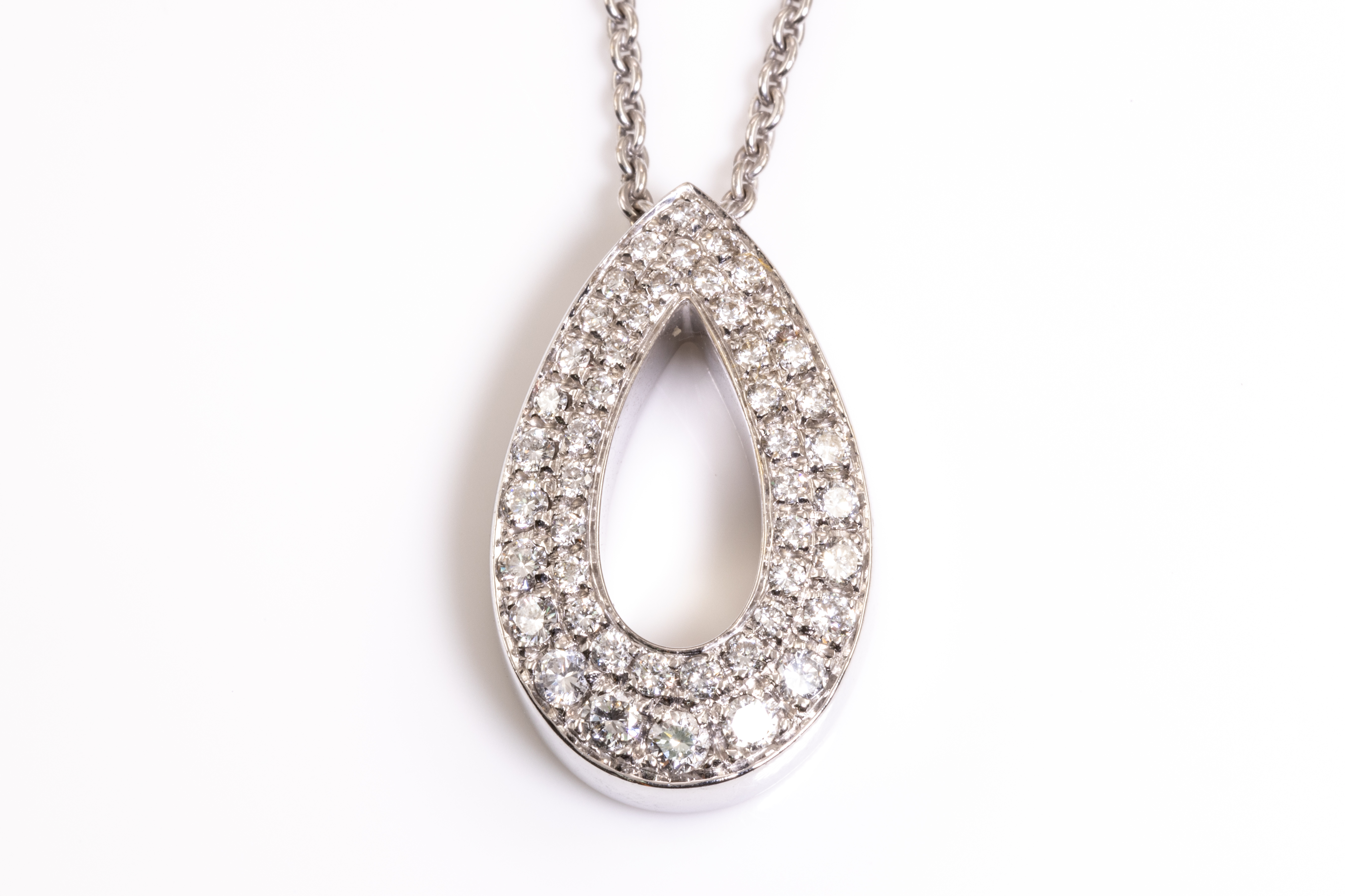 Piaget Millennium Diamond necklace with round Diamonds totalling approximately 1.50cts (Estimated grading: G VS). Circa: 2000. 18ct white gold with Piaget 18ct white gold 42cm chain. With Certificate #415986. Weight: 15.4g. (Pre-owned)