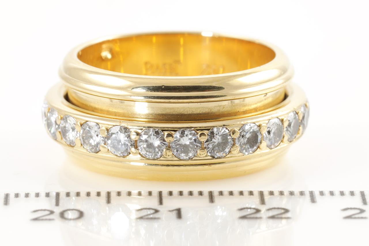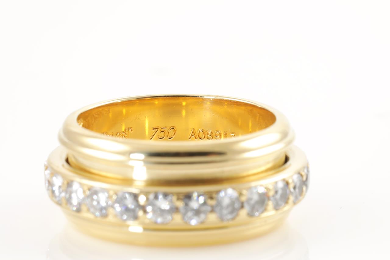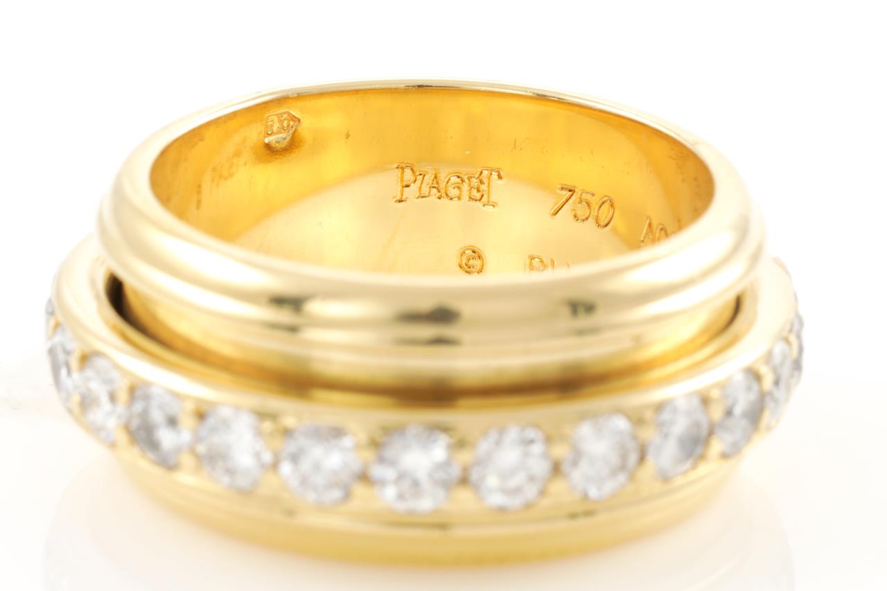 Piaget Posession ring with round Diamonds totalling approximately 2.50cts. 18ct yellow gold. Circa 1990. Piaget stamped size 62, U - ring resizing is not recommended. Weight: 21.7g. With Certificate (Pre-owned)