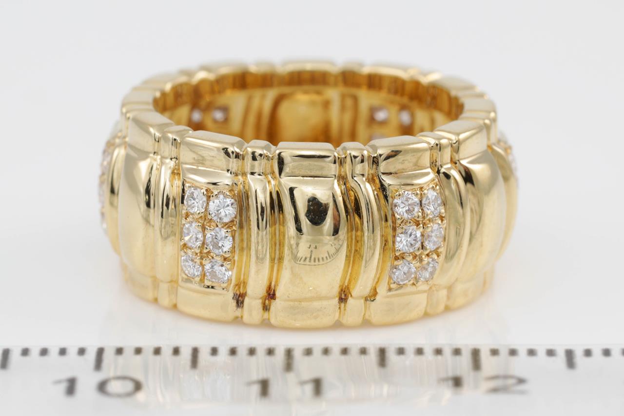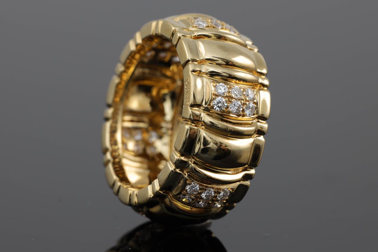 Piaget Tangara ring with round Diamonds totalling 0.72cts (Estimated grading: G VS). 18ct yellow gold. Ring size L1/2 - ring resizing is not recommended. Width: 10mm. Weight: 10.8g. Circa 1990. (Pre-owned)