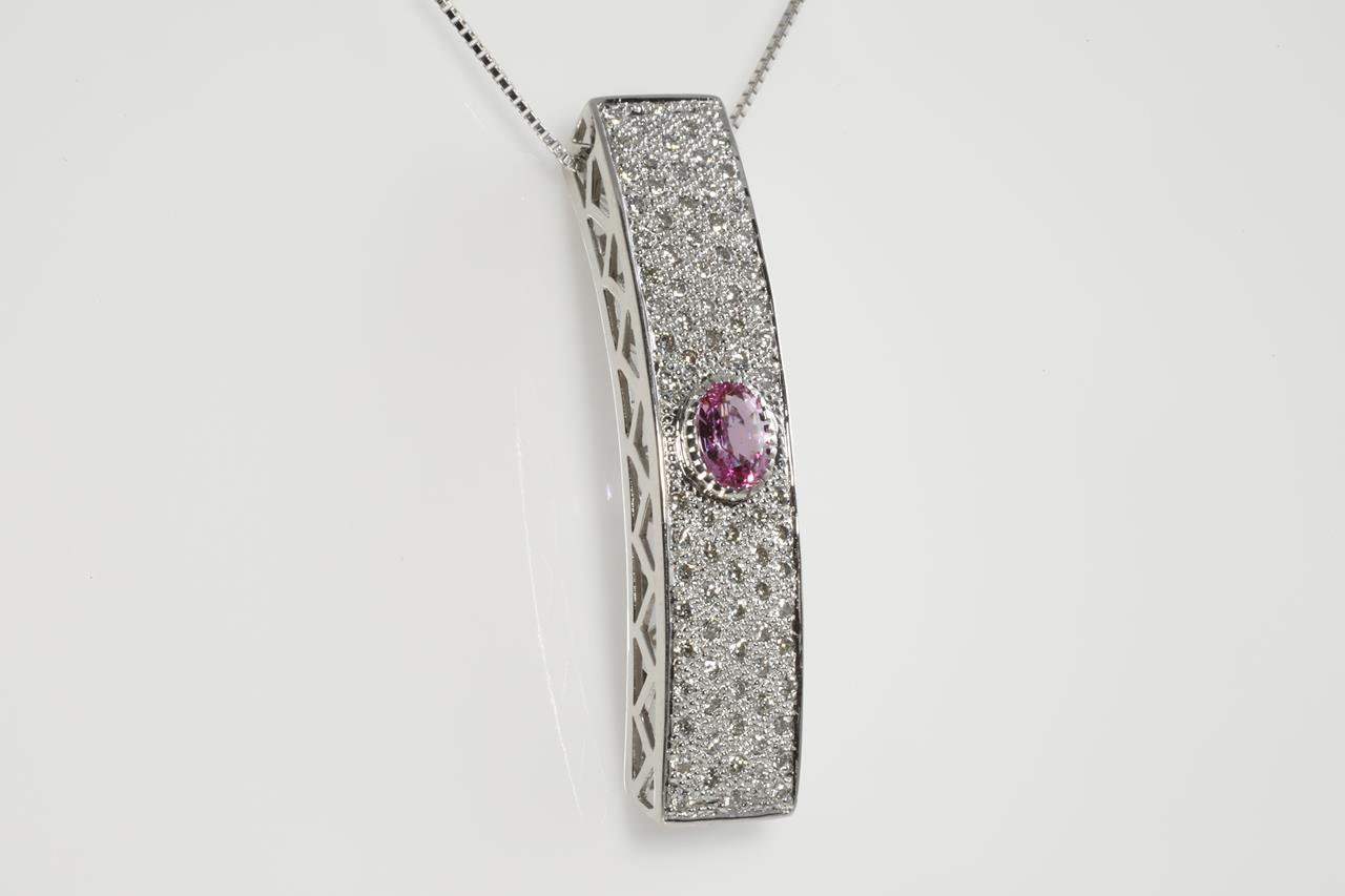 Pink Sapphire and Diamond Pendant