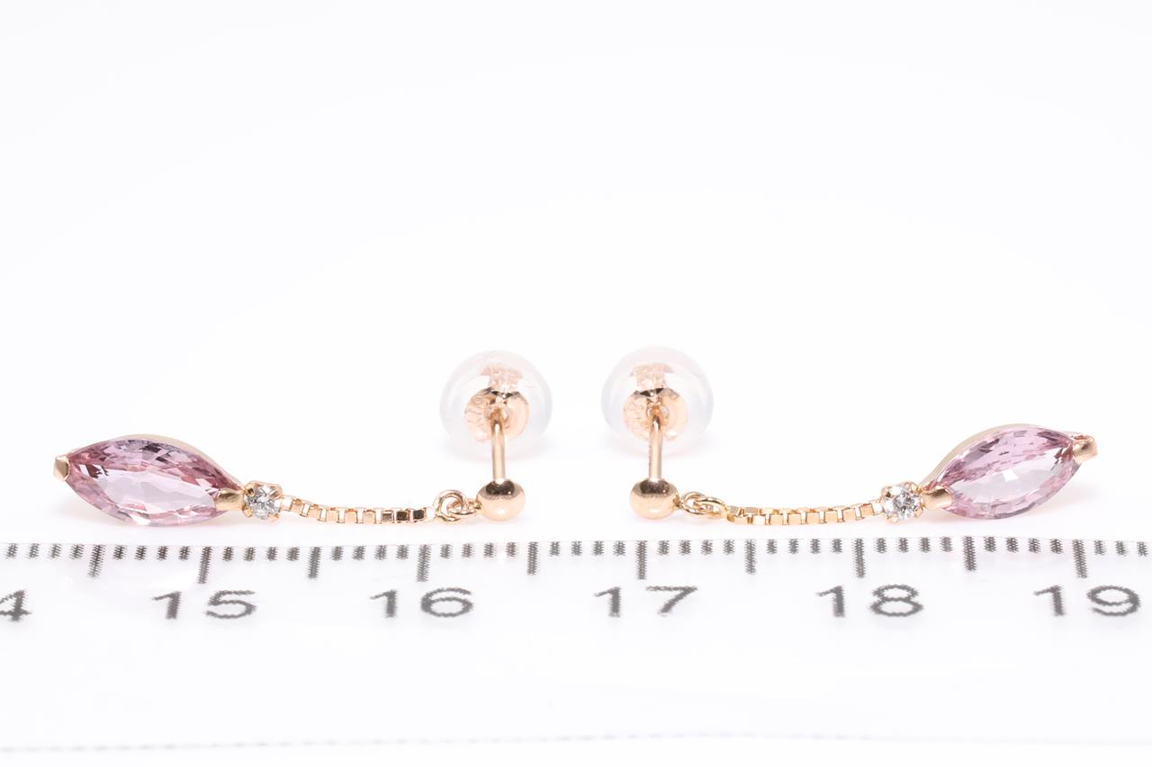 Sapphire and Diamond earrings with marquise cut pink Sapphires totalling 1.20cts and Diamonds totalling 0.04cts. 18ct rose gold with gold & silicon backs. Weight: 0.9g. (As new)
