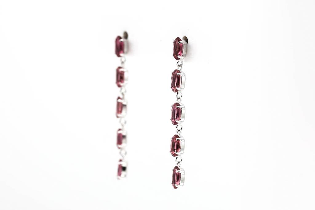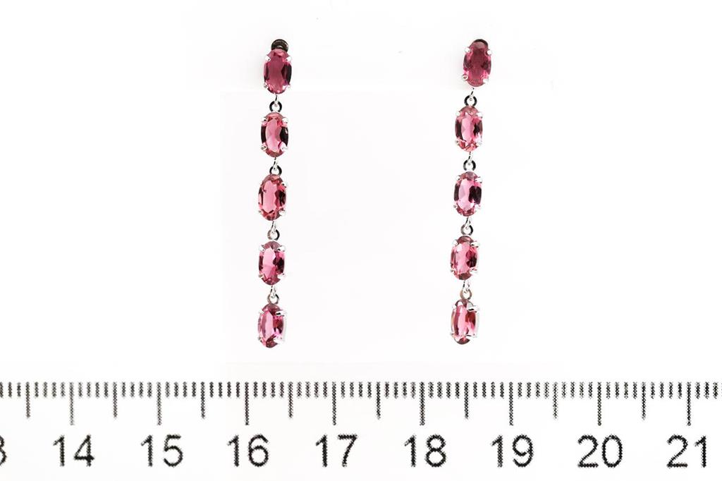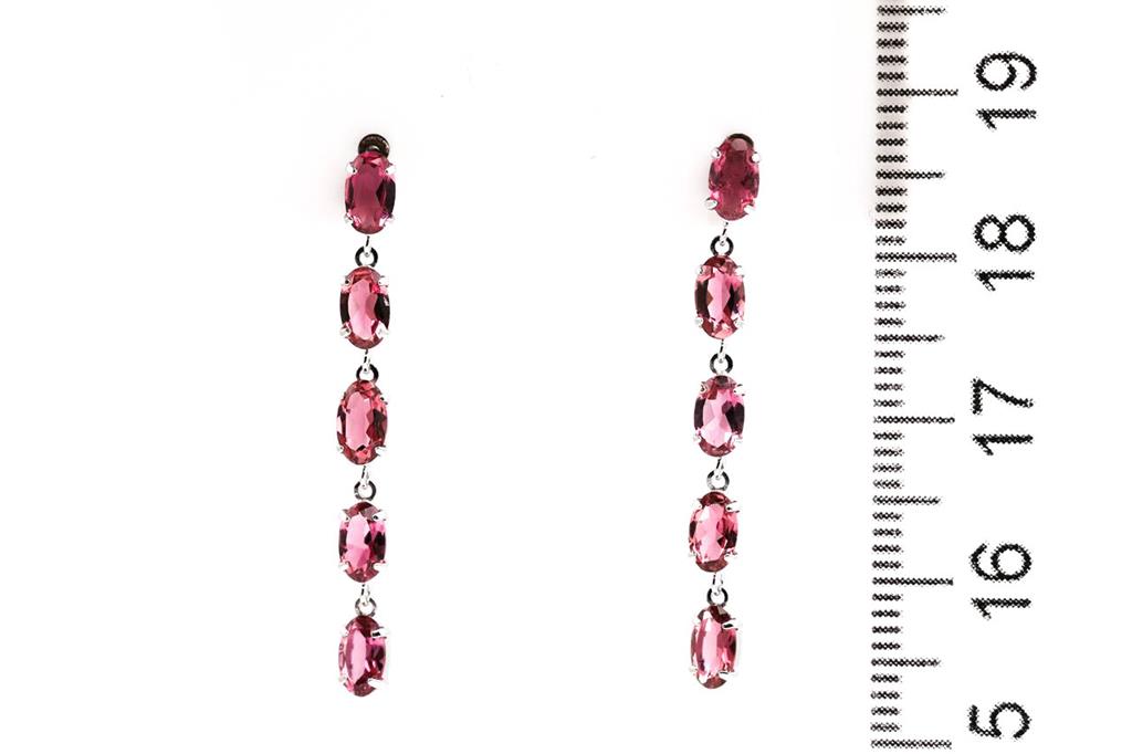 Tourmalline drop earrings with pink oval Tourmaline totalling 1.98cts. Platinum with silicon backs. Weight: 1.6g. (Pre-owned)