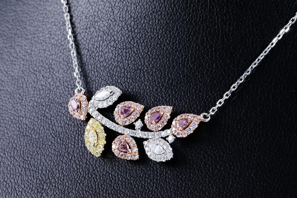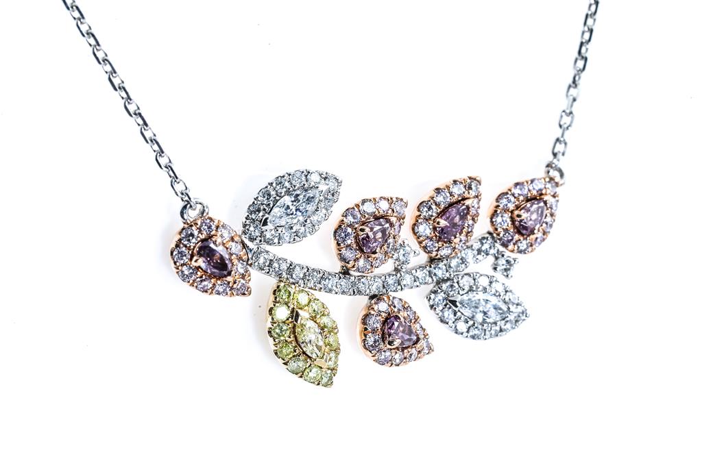 Pink, Yellow & White Diamond Necklace