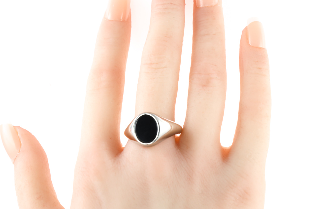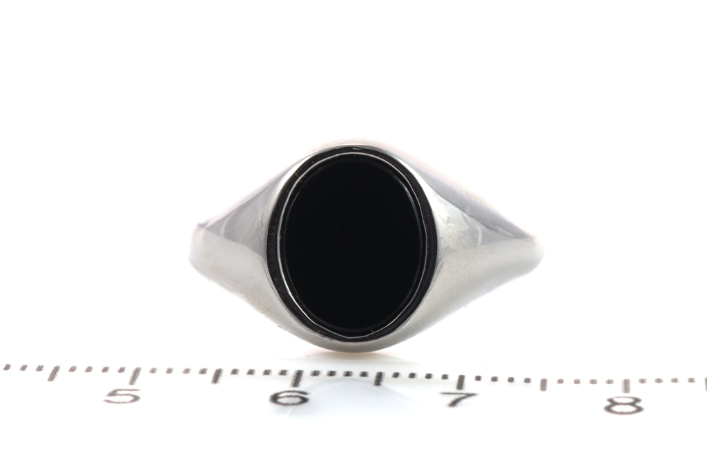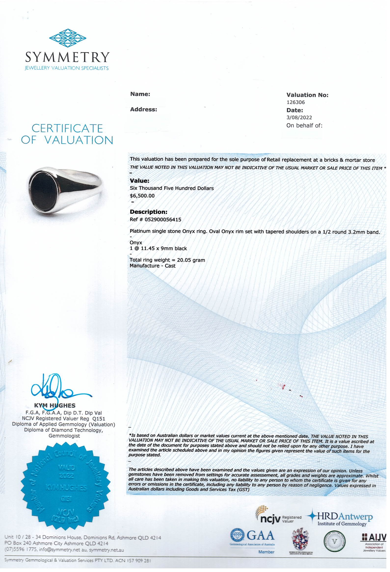 Onyx ring with oval cut black Onyx of 11.45 x 9mm. Platinum. Ring size: U. Weight: 20g. With Valuation Certificate (Reference #052900056415). (Pre-owned)