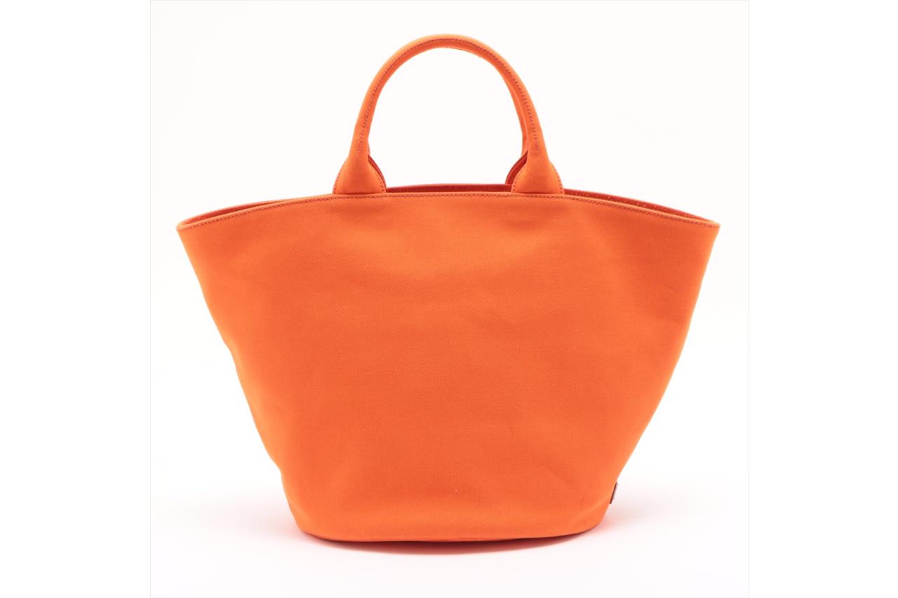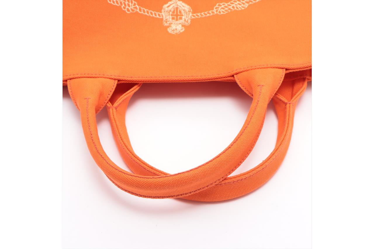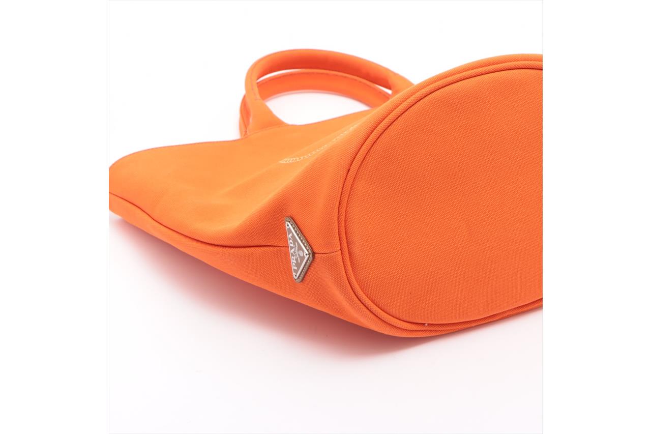 Prada Canapa Convertible Shopping Tote. Orange Canvas. Approximate dimensions: 26cm (L) x 30cm (H) x 19cm (D) and 13cm handle height. With Entrupy Certificate of Authenticity. With Pouch and detachable shoulder strap. (Pre-owned)