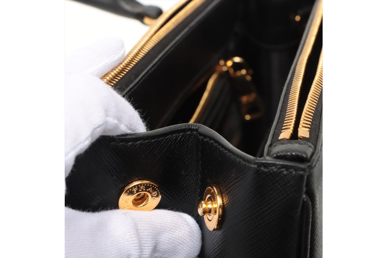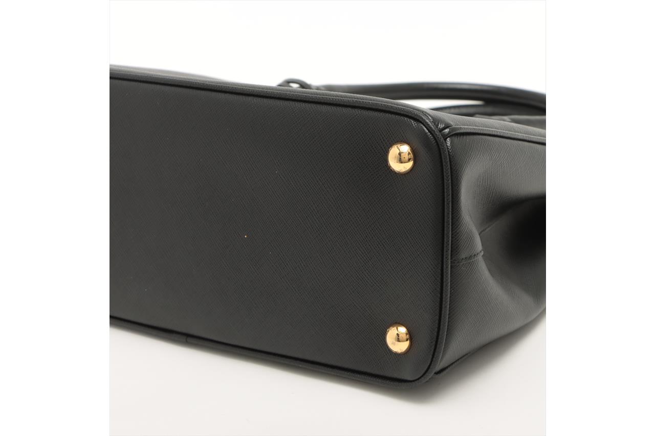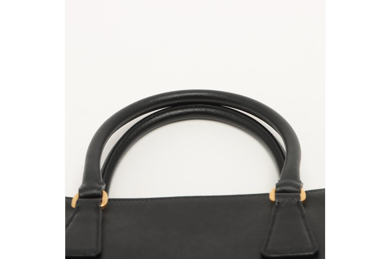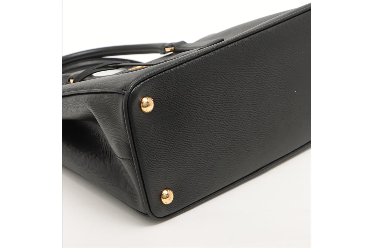 Prada Medium Galleria Saffiano Leather Bag. Featuring gold-tone hardware, black Saffiano leather exterior and dual rolled handles, Prada logo-print nylon lining, and a removable leather keyring. Approximate dimensions: 28.5cm (W) x 20cm (H) x 13cm (D), 13cm handle height. Accompanied by Prada booklets and authenticity card (Shoulder strap not included). With Entrupy Certificate of Authenticity. (Pre-owned)