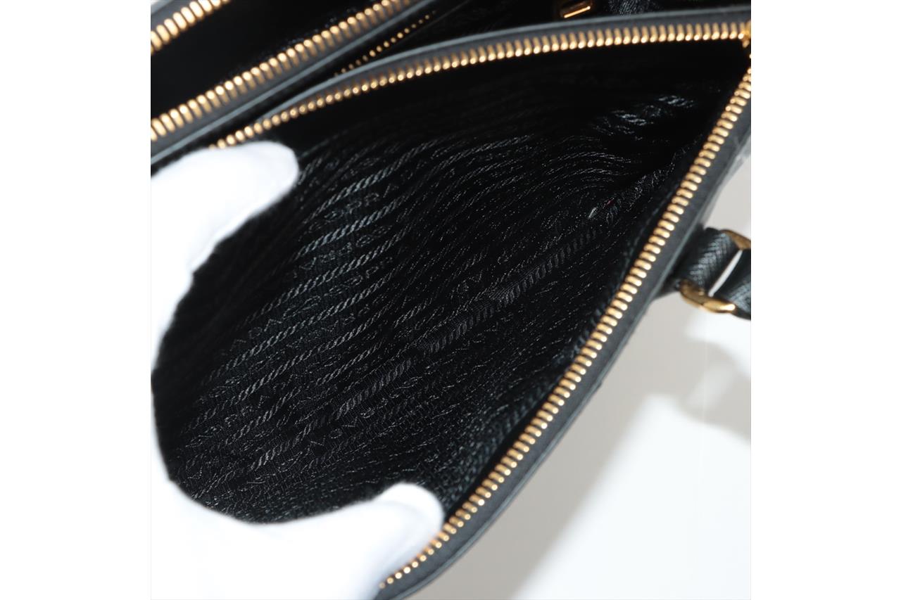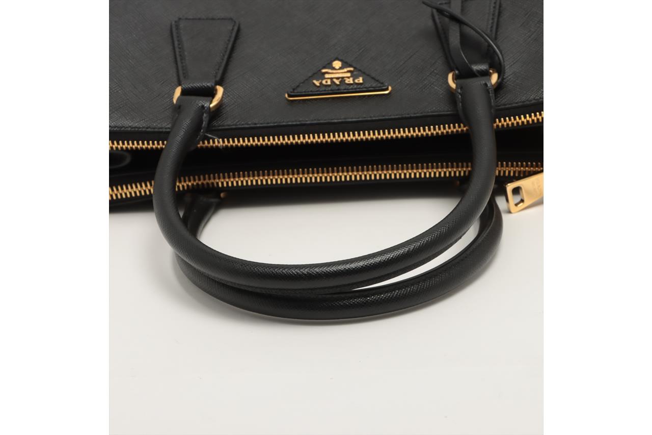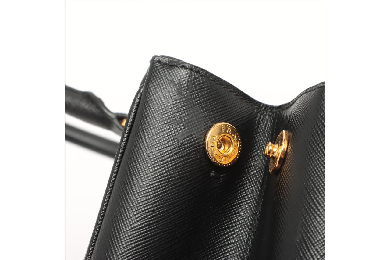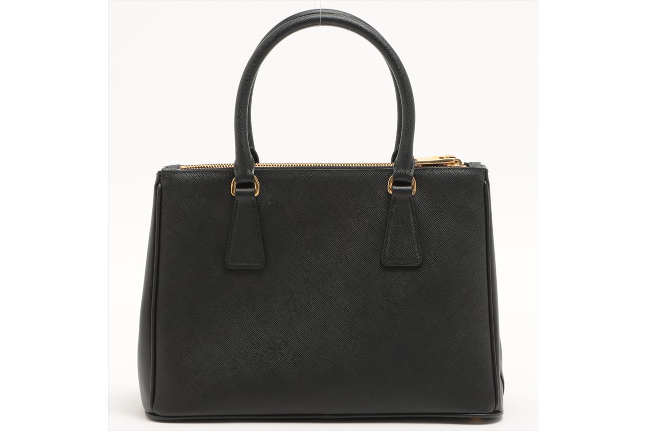 Prada Medium Galleria Saffiano Leather Bag. Featuring gold-tone hardware, black Saffiano leather exterior and dual rolled handles, Prada logo-print nylon lining, and a removable leather keyring. Approximate dimensions: 28.5cm (W) x 20cm (H) x 13cm (D), 13cm handle height. Accompanied by Prada booklets and authenticity card (Shoulder strap not included). With Entrupy Certificate of Authenticity. (Pre-owned)