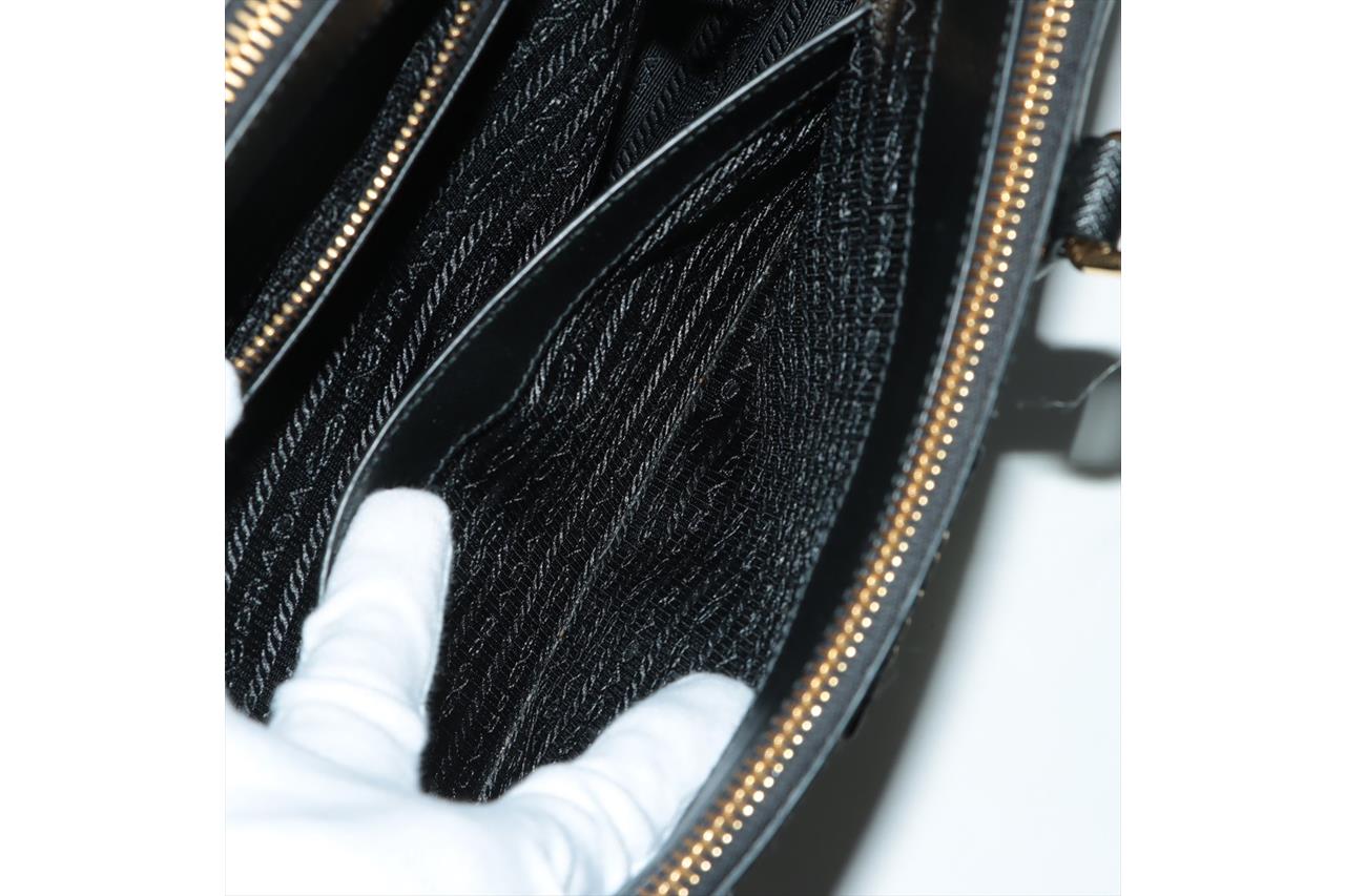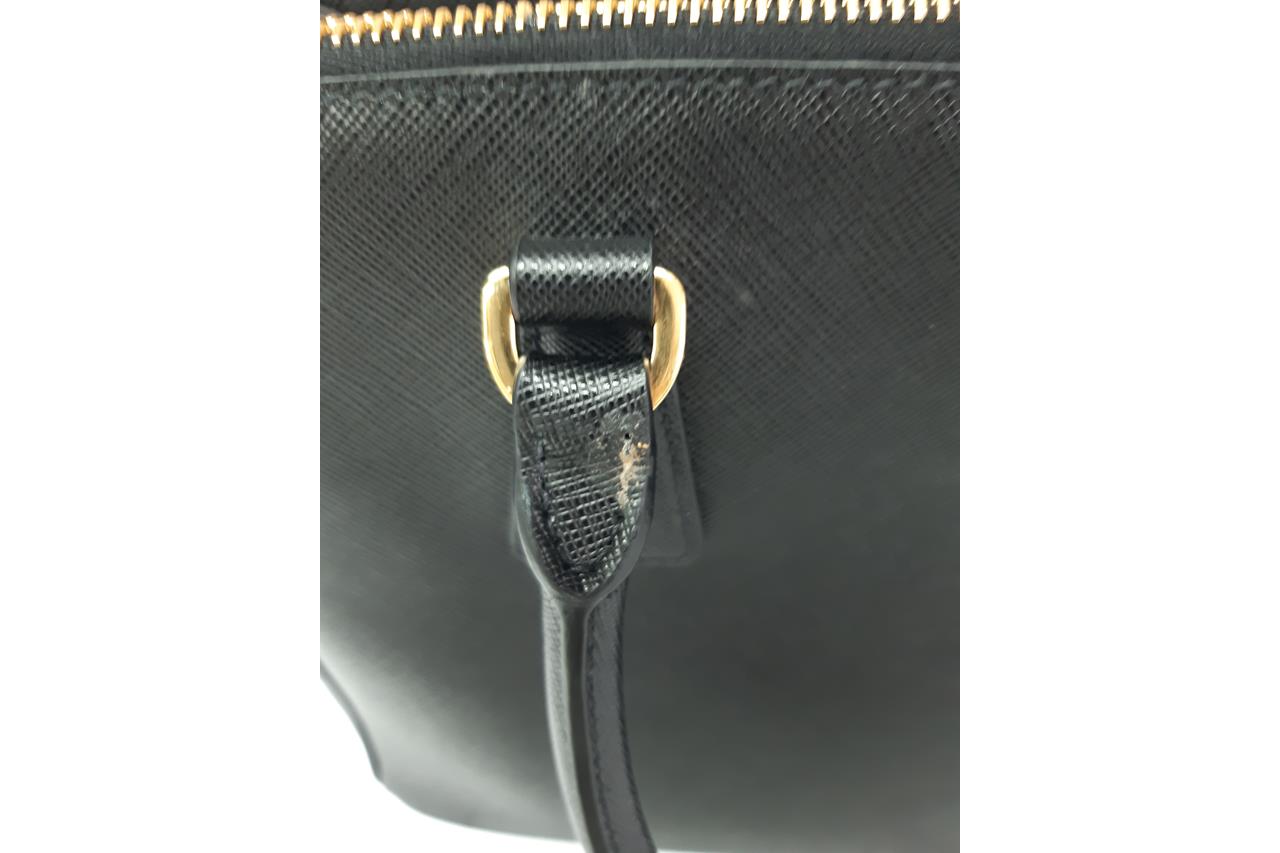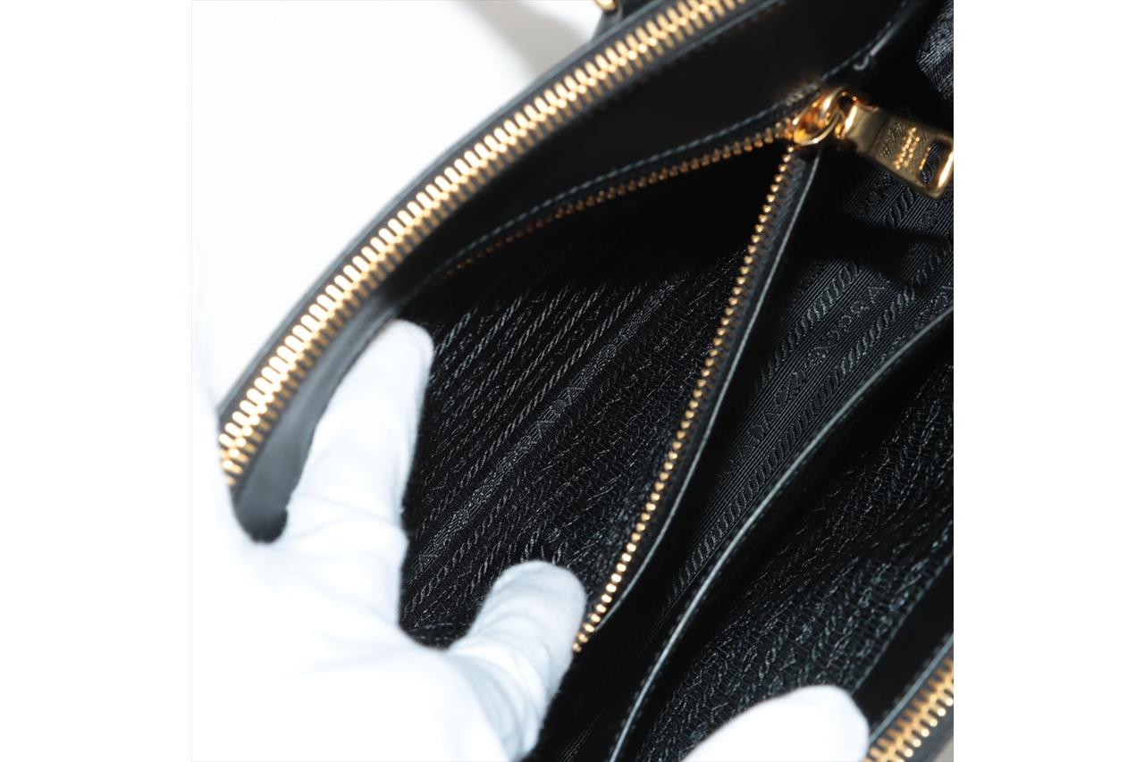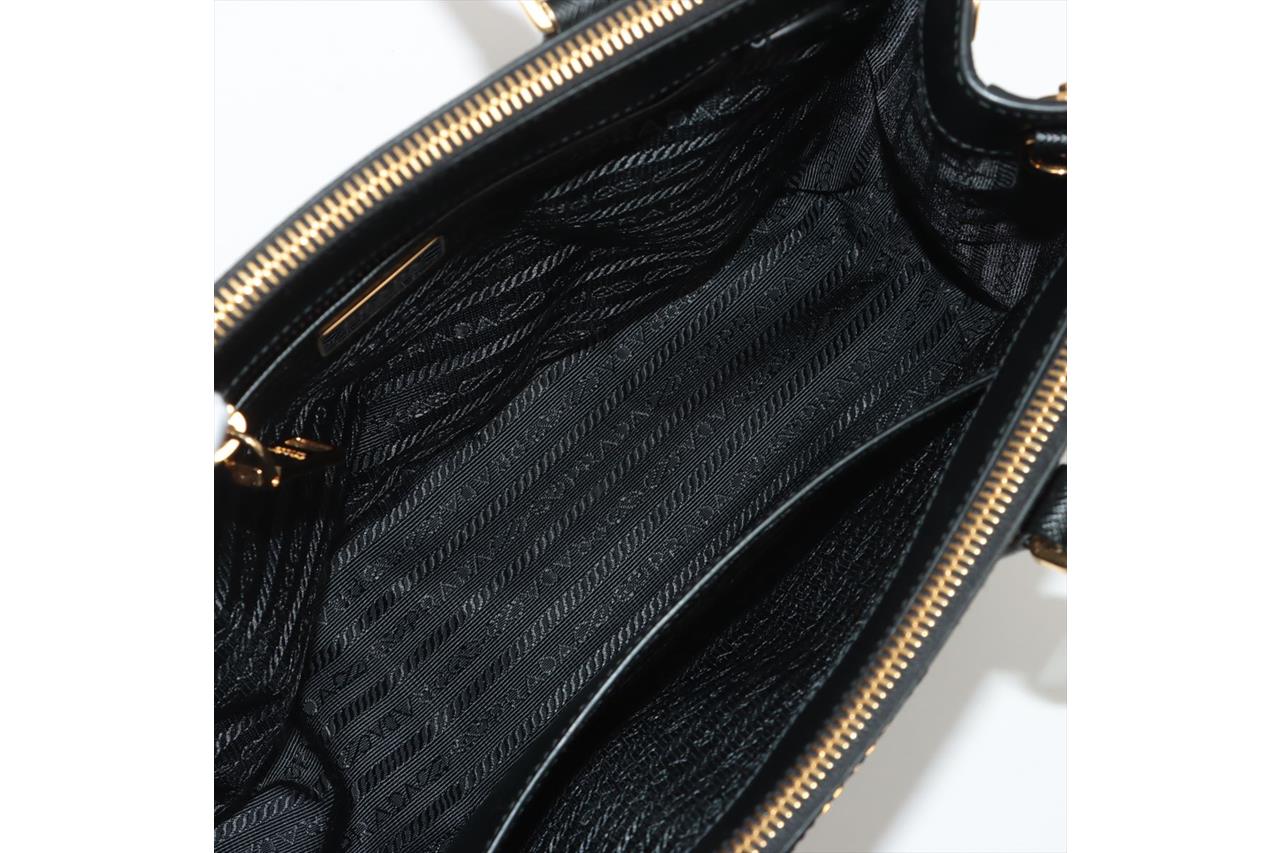 Prada Medium Galleria Saffiano Leather Bag. Featuring gold-tone hardware, black Saffiano leather exterior and dual rolled handles, Prada logo-print nylon lining, and a removable leather keyring. Approximate dimensions: 28.5cm (W) x 20cm (H) x 13cm (D), 13cm handle height. Accompanied by Prada booklets and authenticity card (Shoulder strap not included). With Entrupy Certificate of Authenticity. (Pre-owned)