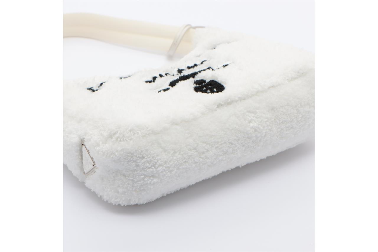 Prada Re-Edition 2000 Faux Fur Shoulder Baq in White. Top handle, zip top and key fob. Approximate dimensions: 22cm (L) x 17cm (H) x 6cm (D). Accompanied by Prada papers and dust bag. Made in Italy. With Entrupy Certificate of Authenticity. (Pre-owned)