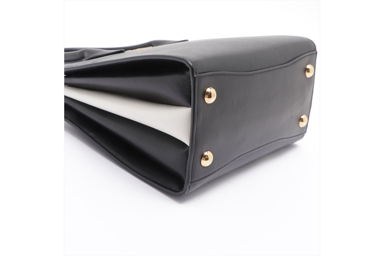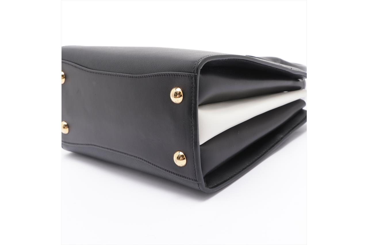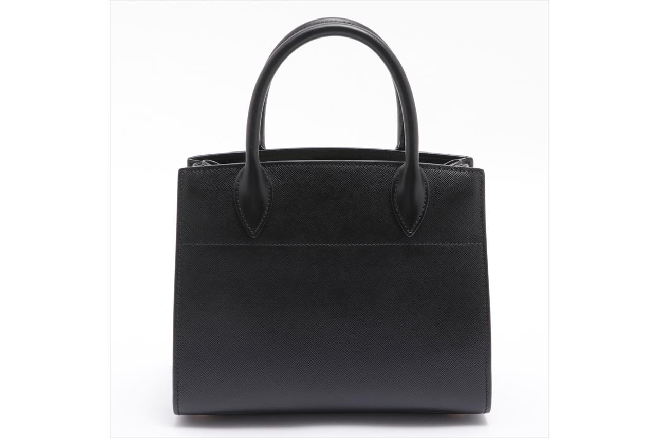 Prada Saffiano Black Leather Handbag. Approximate dimensions: 22cm (L) x 18cm (H) x 12cm (D) and 9cm handle height. Accompanied by Prada detachable shoulder strap and dust bag. With Entrupy Certificate of Authenticity. (Pre-owned)