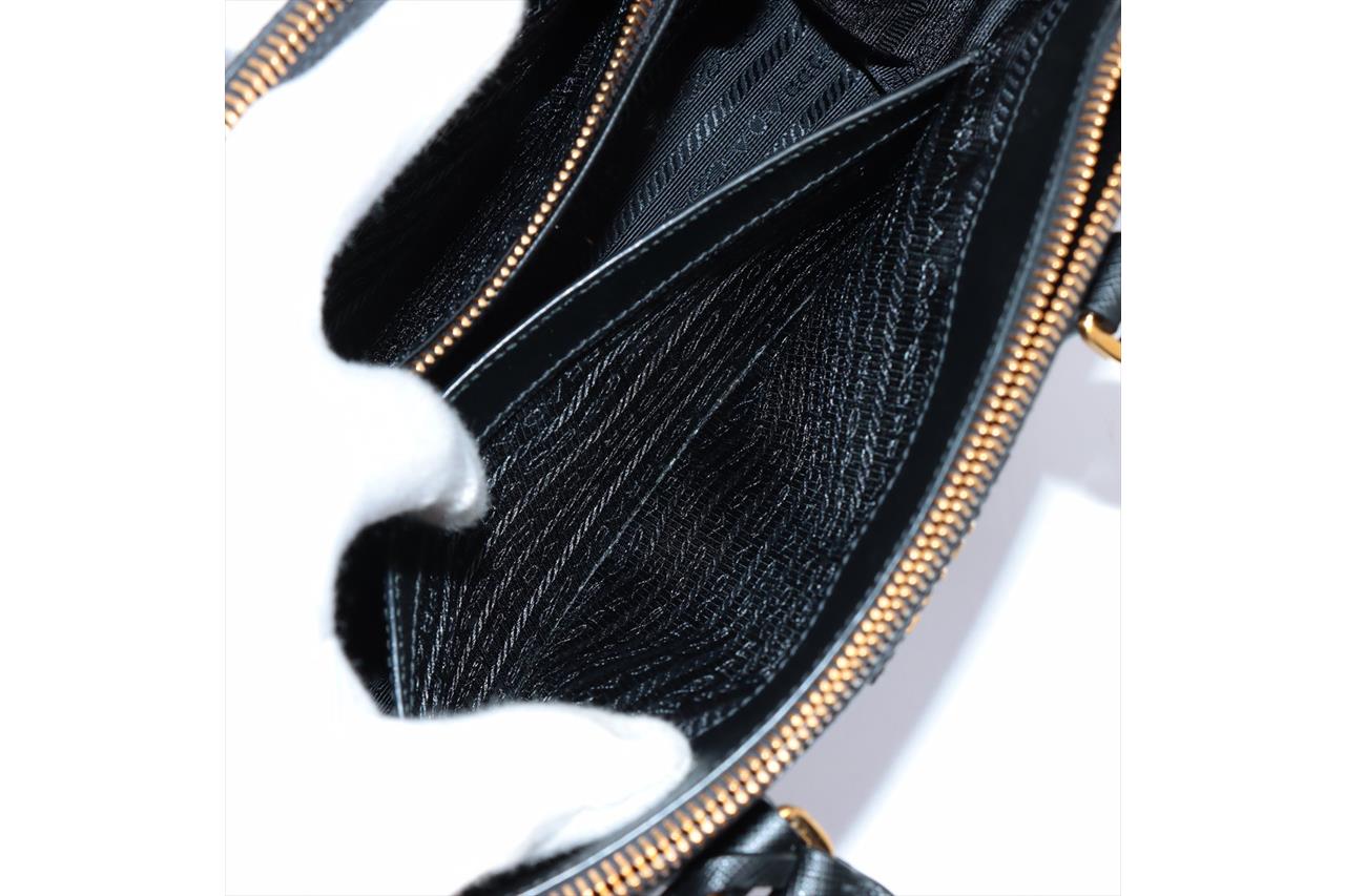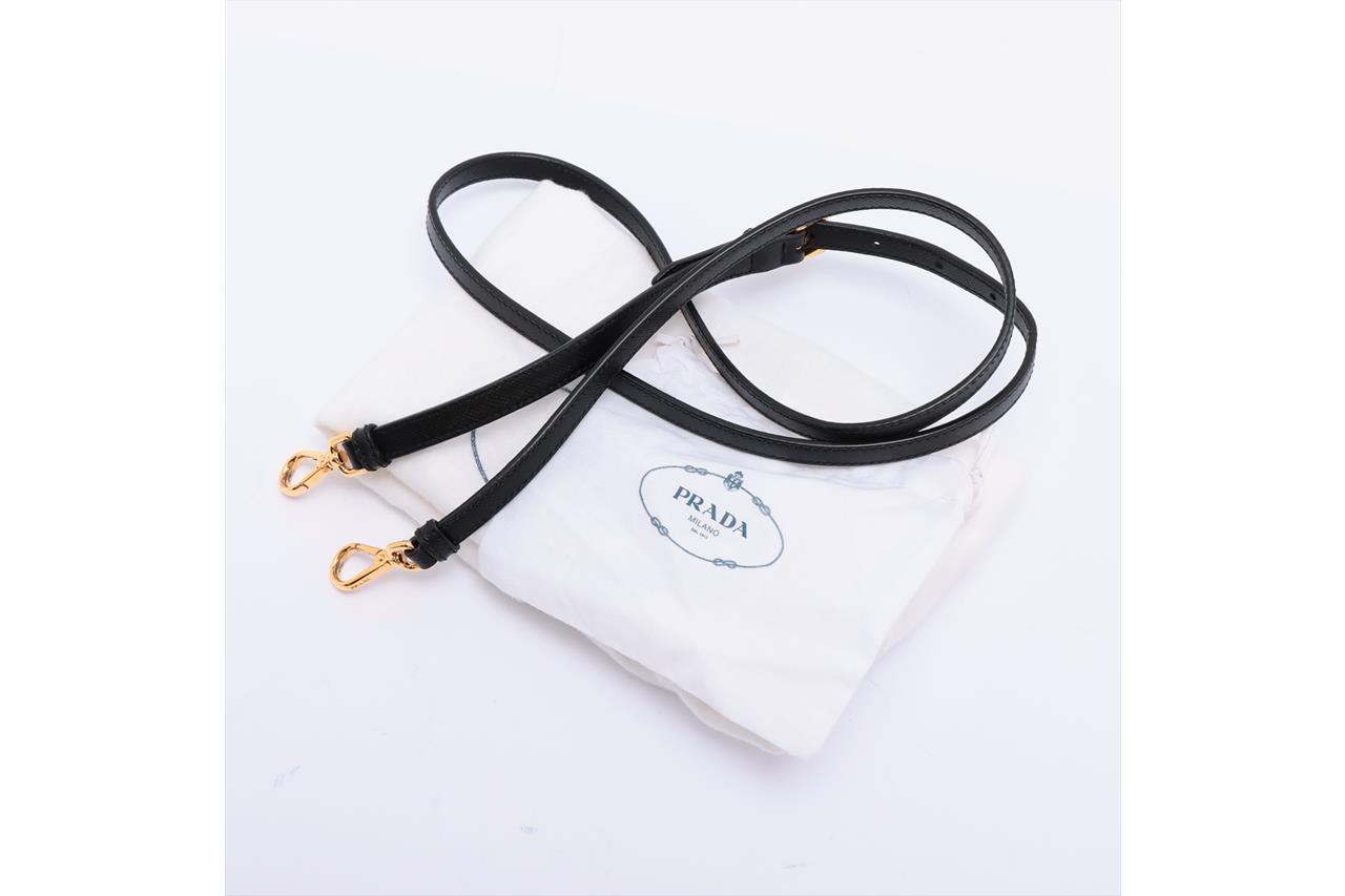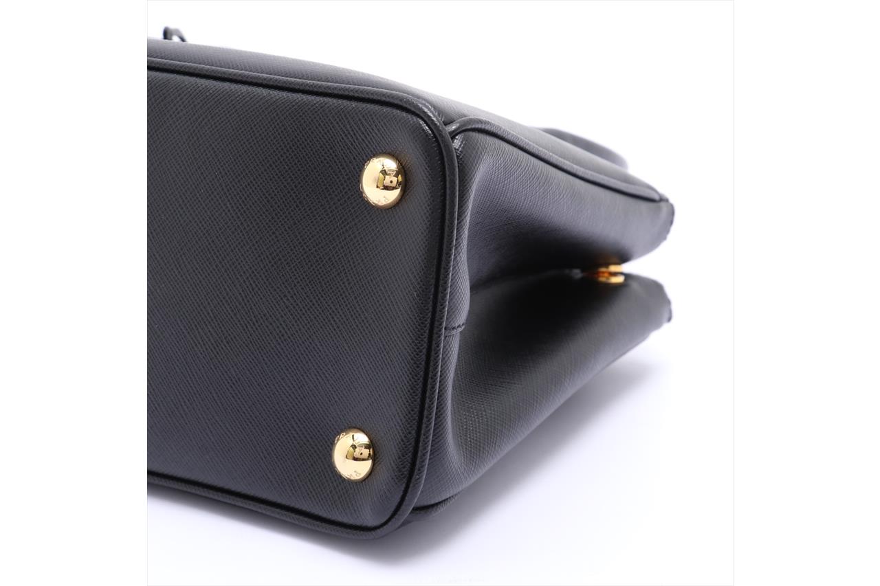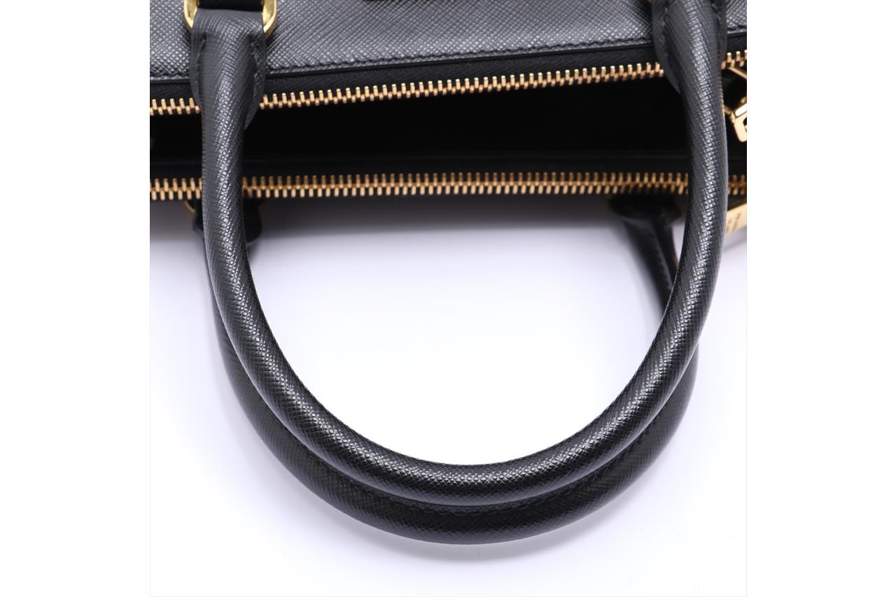 Prada Saffiano Lux 2 Way Black Handbag. Black Saffiano leather and gold-tone hardware. Approximate dimensions: 25cm (L) x 17cm (H) x 11.5cm (D) and 11cm handle height. With Entrupy Certificate of Authenticity, Prada shoulder strap and dust bag. (Pre-owned)