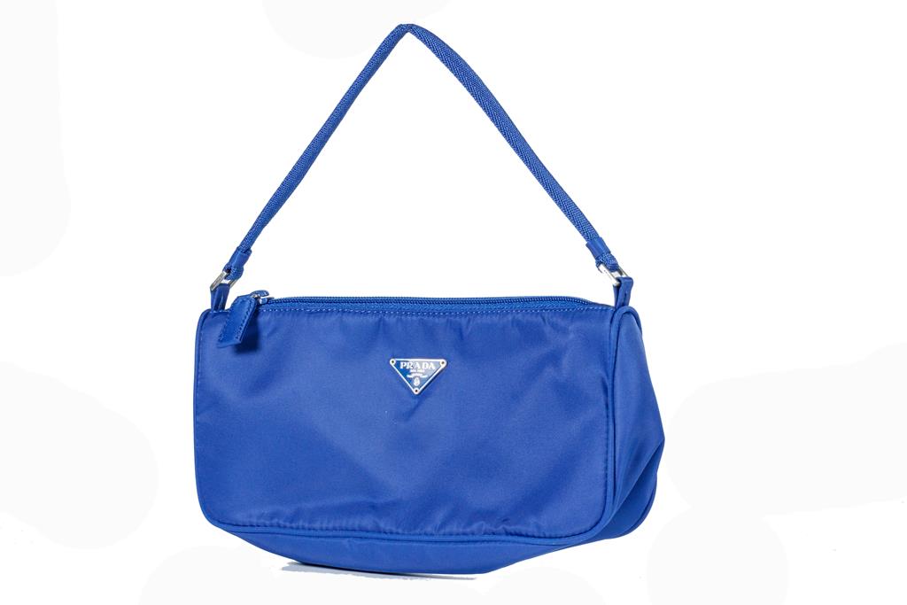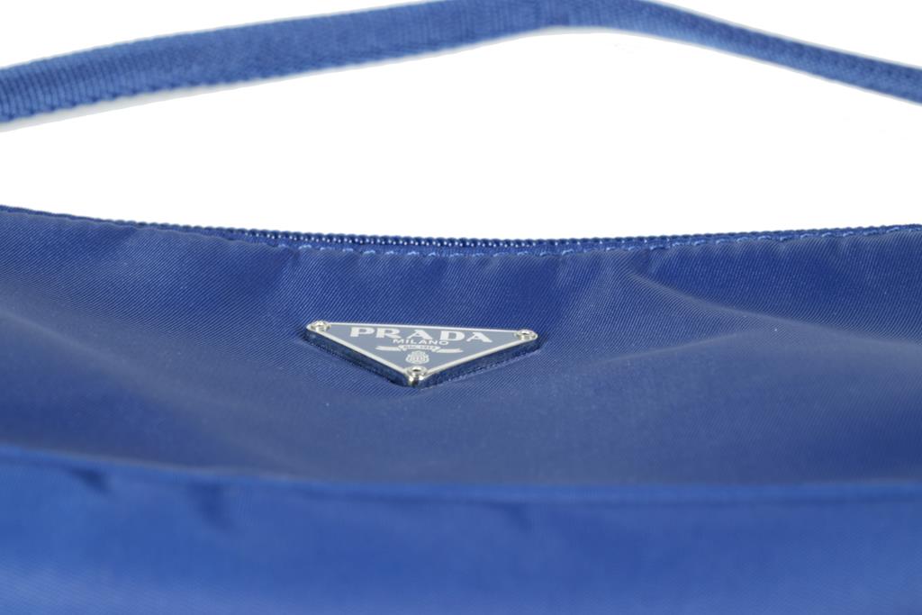 Prada Tessuto Sport Pochette. Featuring in royal blue nylon, silver-tone hardware, zip closure at the top. Approximated dimensions: 24cm(L) x 11cm(H) x 6cm(D), handle drop height: 13cm. Accompanied with Prada certificate card and Prada plastic bag. With Entrupy Certificate of Authenticity. (Pre-owned)