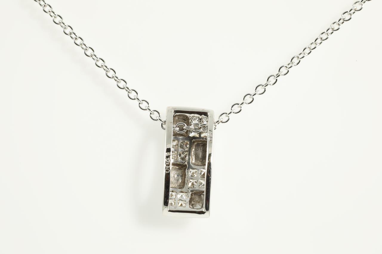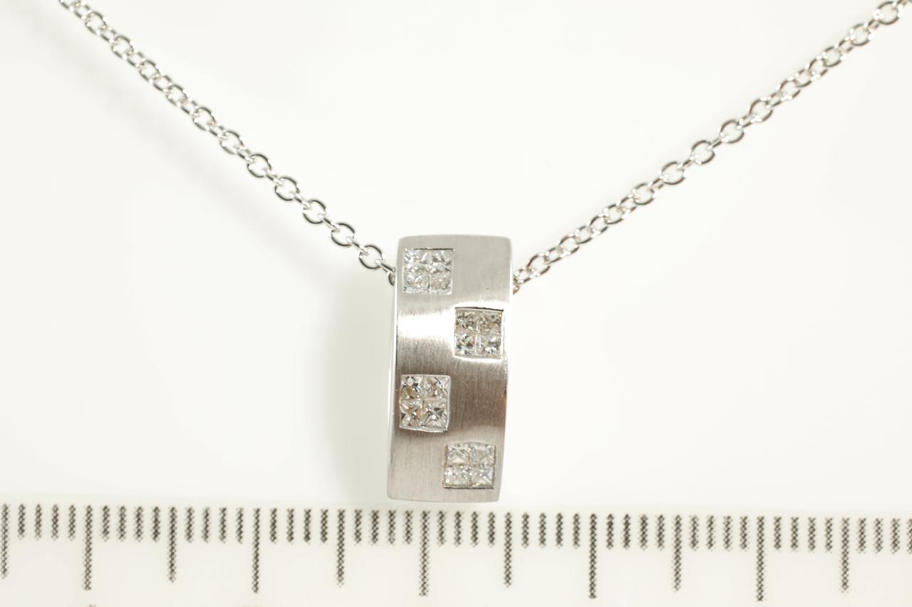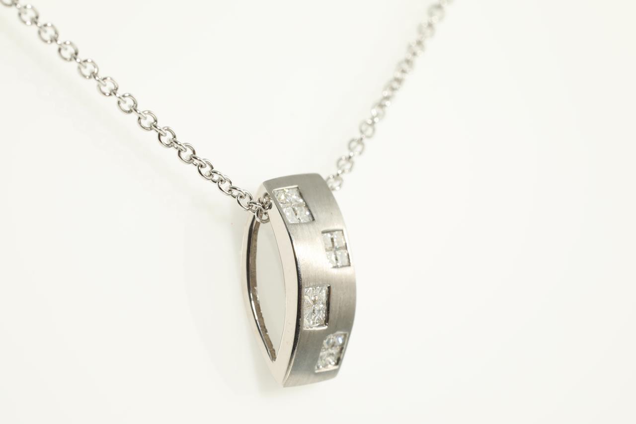 Diamond pendant with invisibly set princess cut Diamonds totalling 0.41cts (Estimated grading: G-H SI). 18ct white gold with 44cm 18ct white gold chain. Weight: 4.3g (As new)