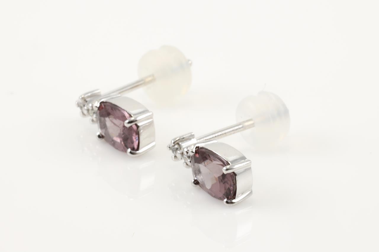 Quartz and Diamond earrings with oval Smokey Quartz totalling approximately 0.80cts and Diamonds totalling approximately 0.04cts. 18ct white gold with silicon backs. Weight 1.7g. (Pre-owned)