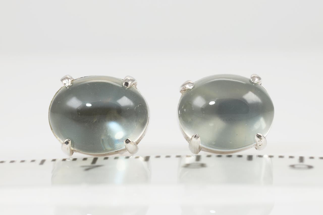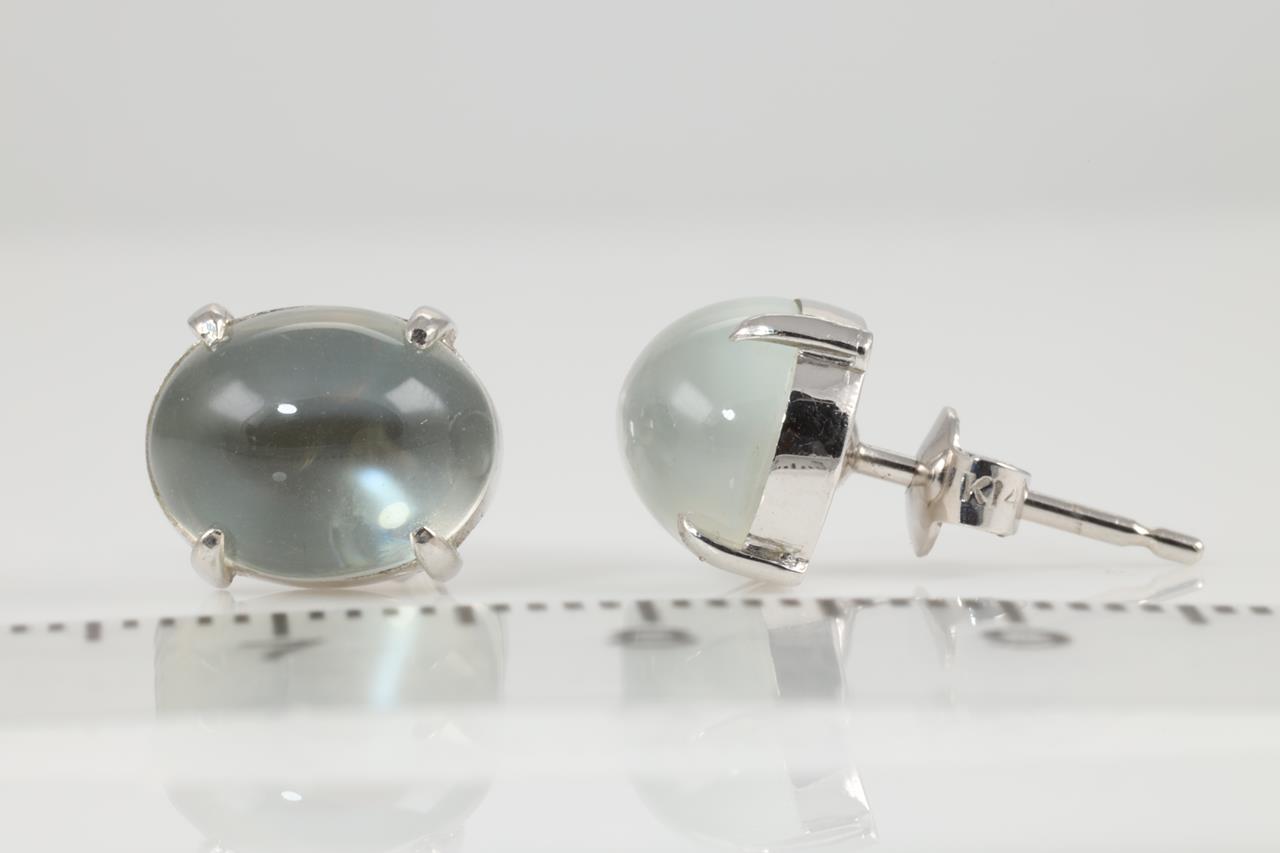 Quartz stud earrings with oval cabochon cut light green Prasiolite Quartz. 14ct white gold. Weight: 3g. (Pre-owned)
