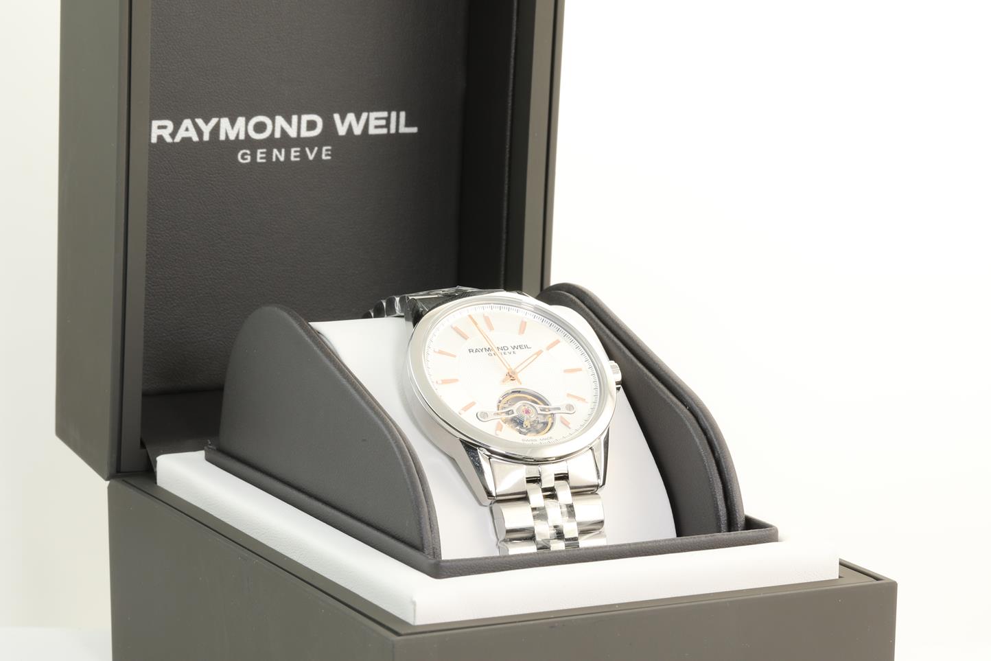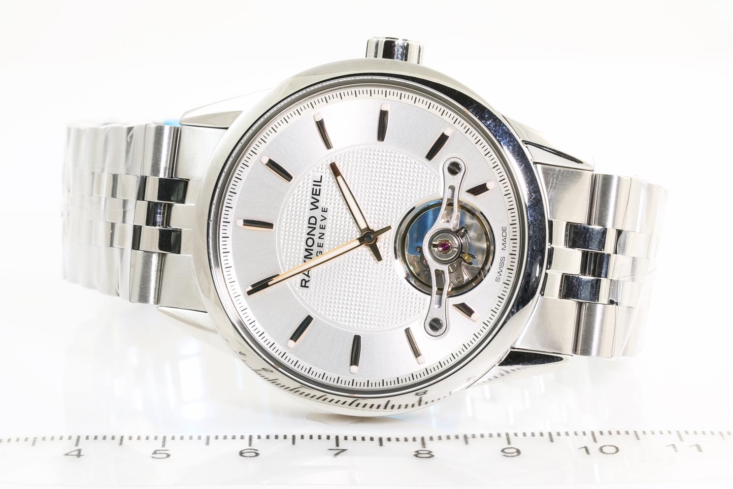 Raymond Weil Freelancer Chronograph stainless steel automatic men's watch. Silver dial, date, case diameter: 42mm, Swiss made. Ref# 2780-ST5-65001. With Raymond Weil stainless steel bracelet and clasp. With Raymond Weil box. 12 month FSA warranty. (New)