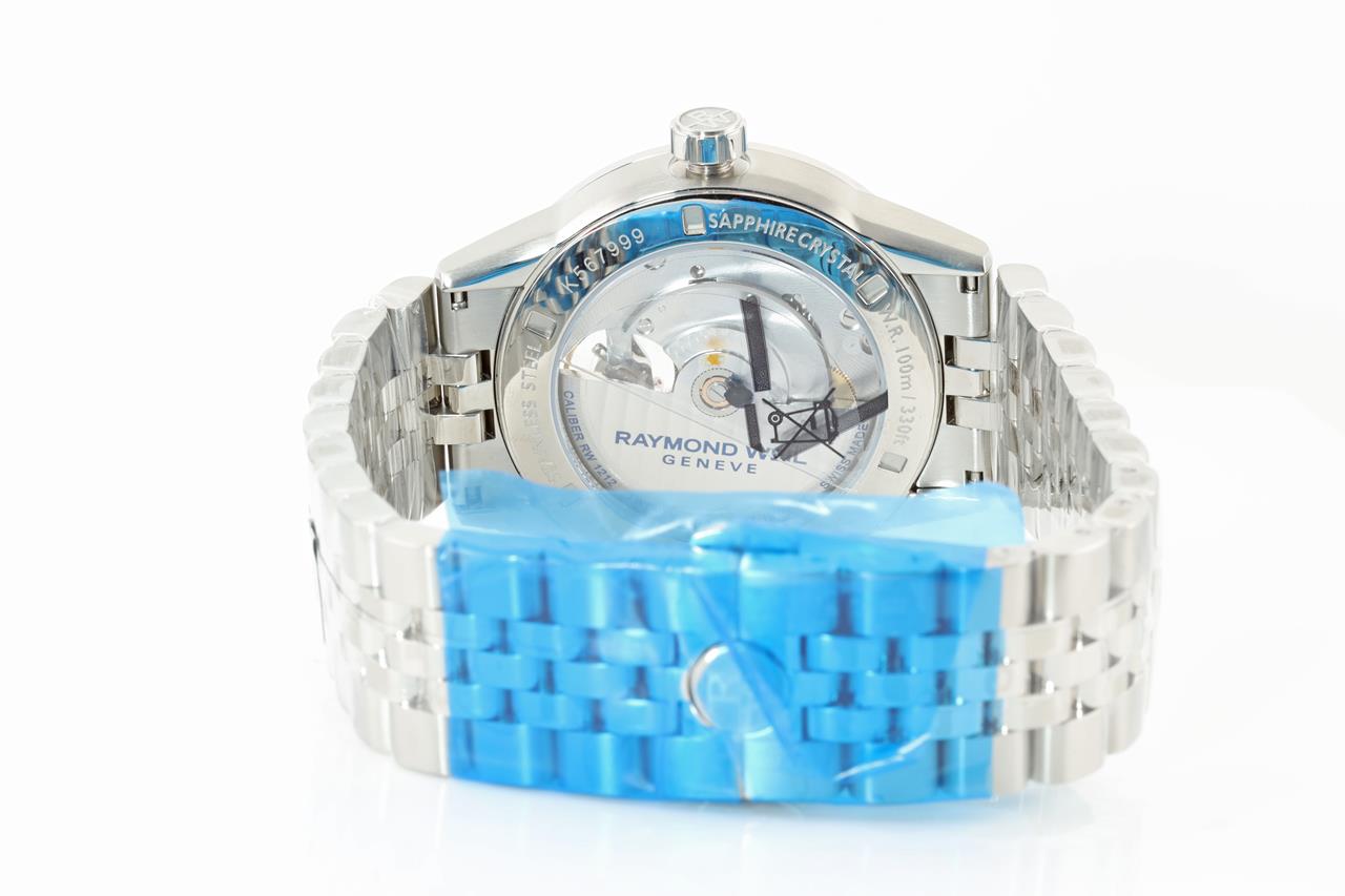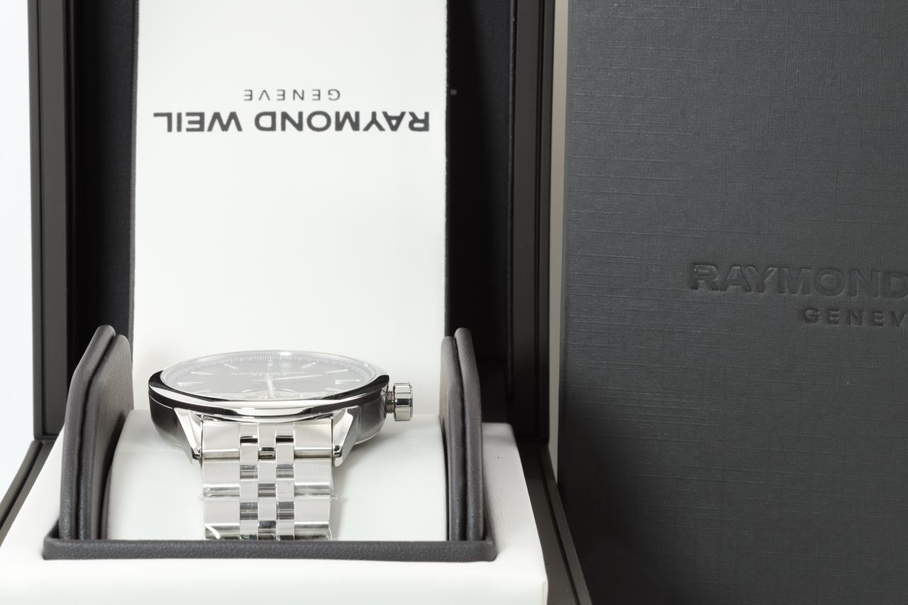 Raymond Weil Freelancer stainless steel automatic mens watch. Black dial, date, case diameter: 42mm, Swiss made. Ref# 2780-ST-20001. With Raymond Weil stainless steel bracelet and clasp. With Raymond Weil box. 12 month FSA warranty. (New, in original wrapping)