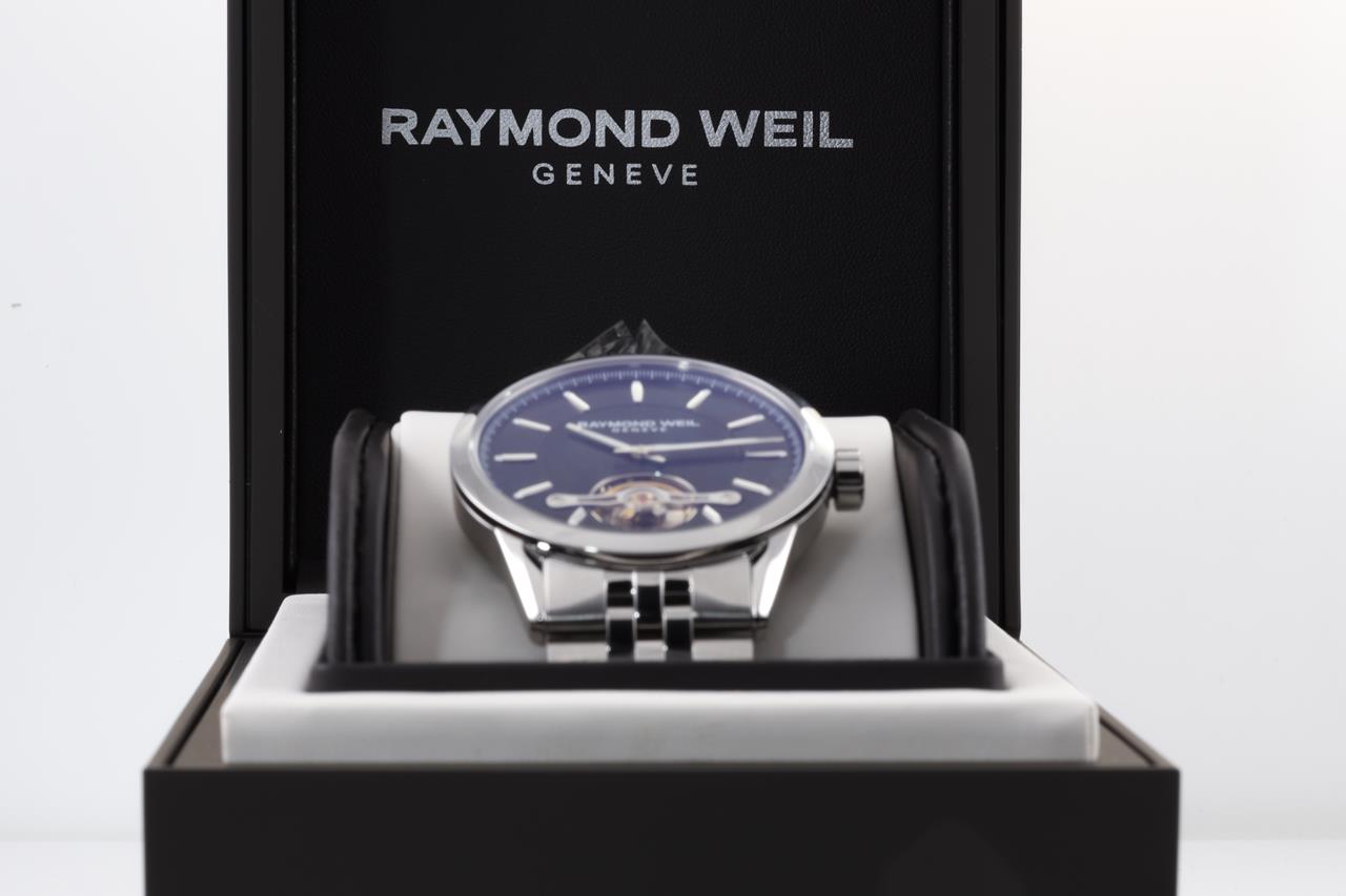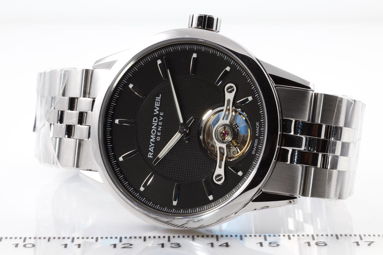 Raymond Weil Freelancer stainless steel automatic mens watch. Black dial, date, case diameter: 42mm, Swiss made. Ref# 2780-ST-20001. With Raymond Weil stainless steel bracelet and clasp. With Raymond Weil box. 12 month FSA warranty. (New, in original wrapping)