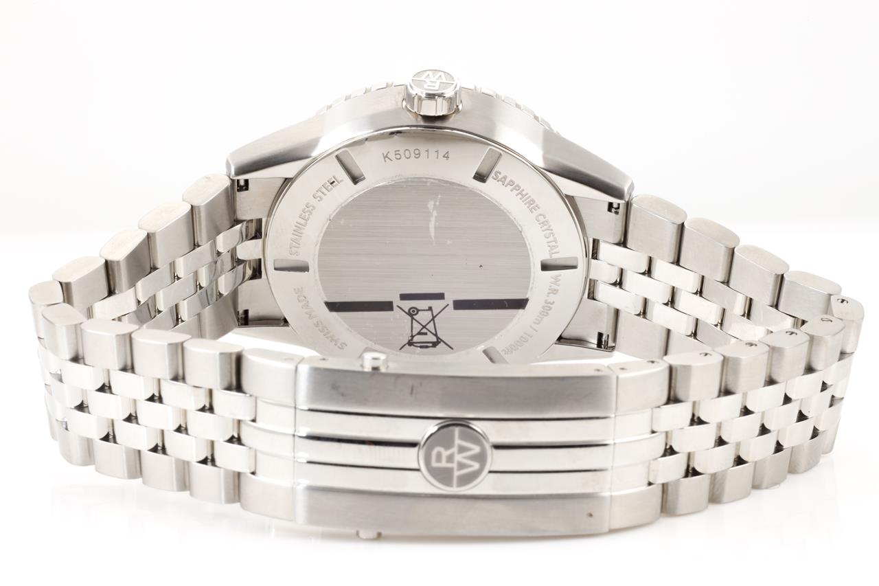 Raymond Weil Freelancer stainless steel automatic mens watch. Blue dial, date, case diameter: 42mm, wrist size: 22cm, Swiss made. Ref# 2760S-T35-0001. With Raymond Weil stainless steel bracelet and clasp. Note: Minor scratches on bracelet due to being display stock. With Raymond Weil box. 12 month FSA warranty. (New)