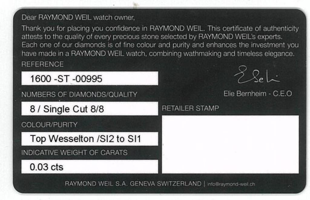 Raymond Weil Shine Diamond Ladies Watch | First State Auctions