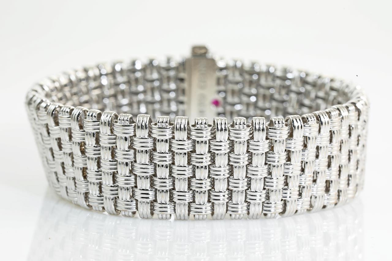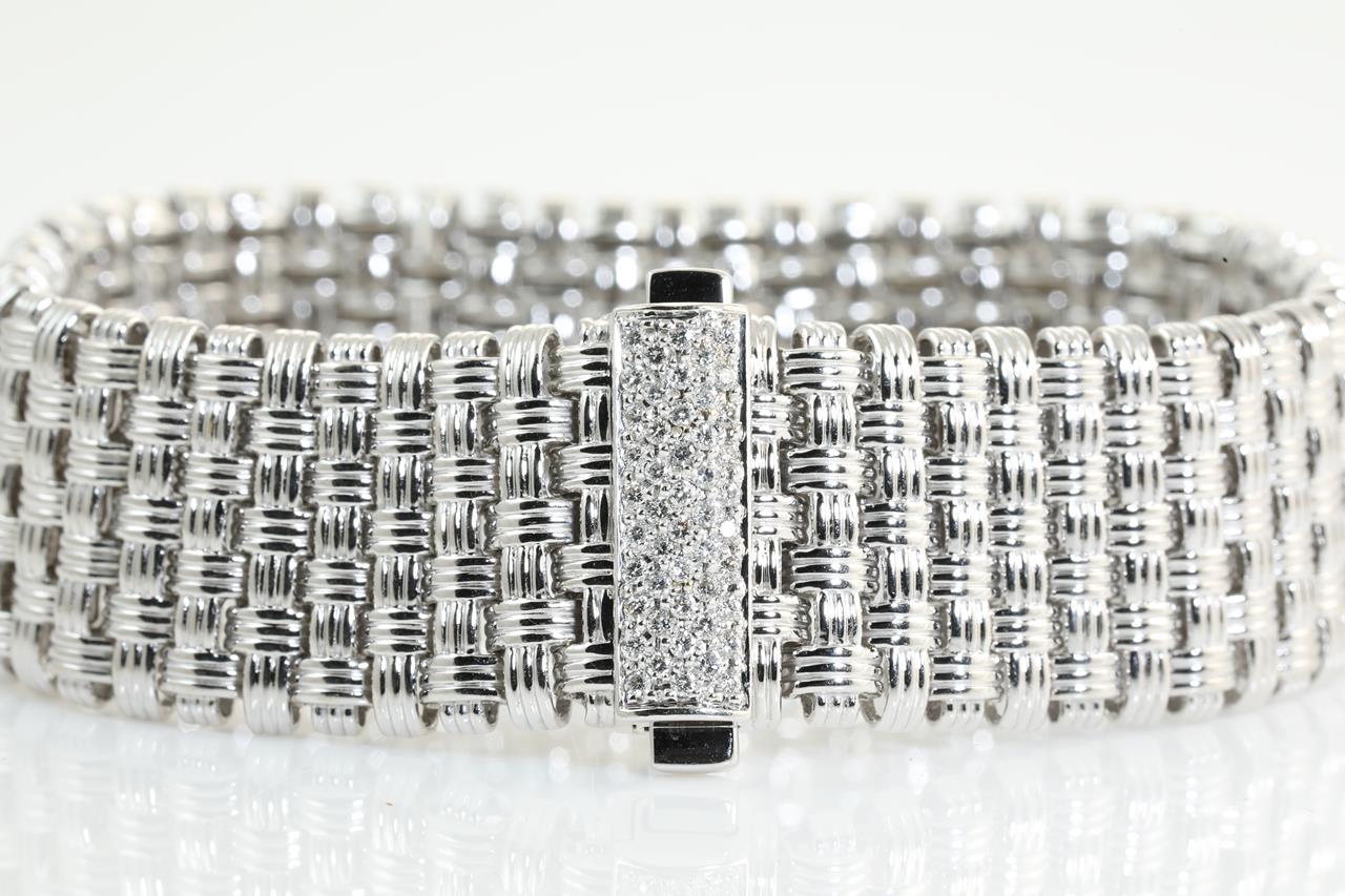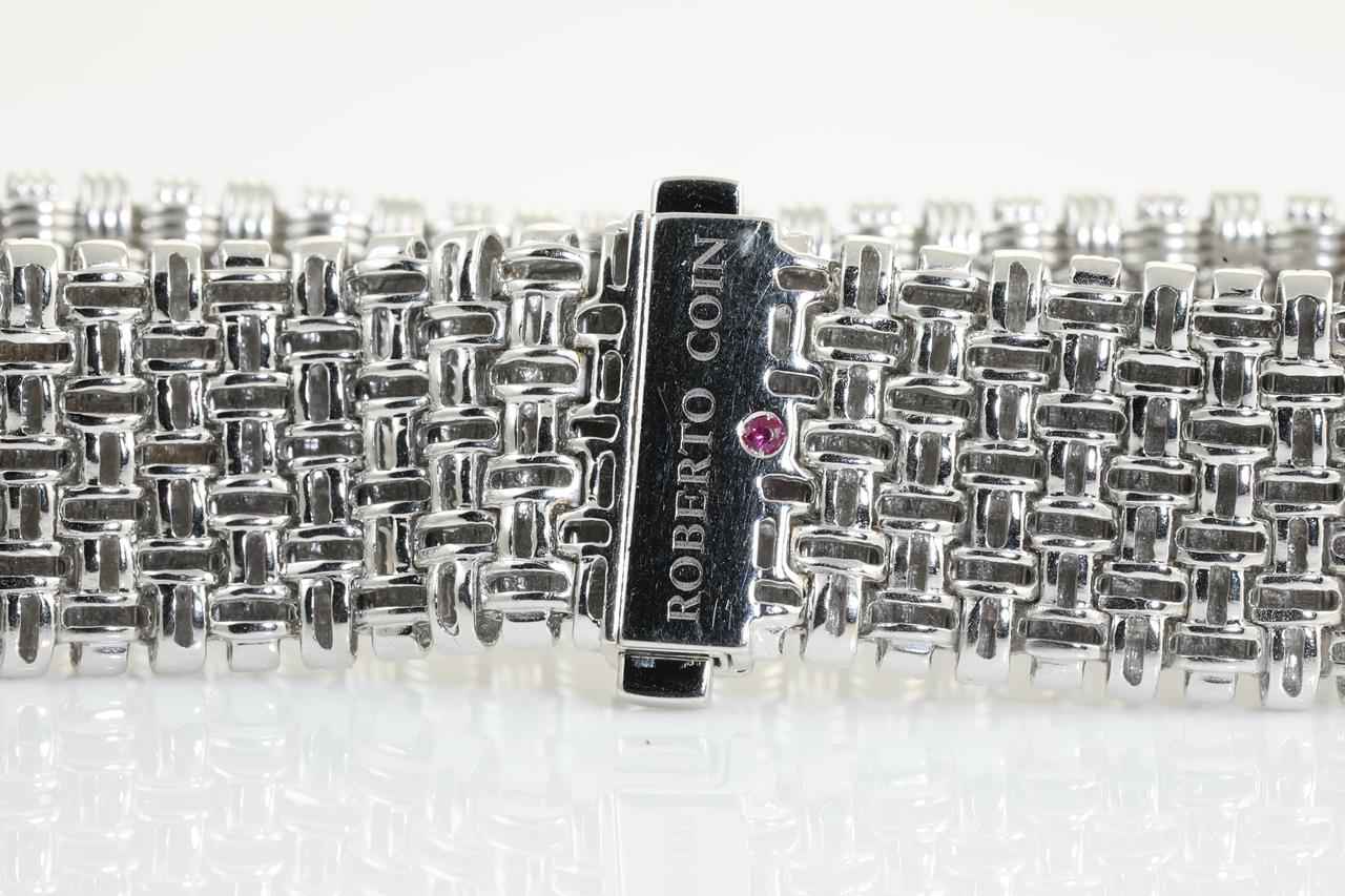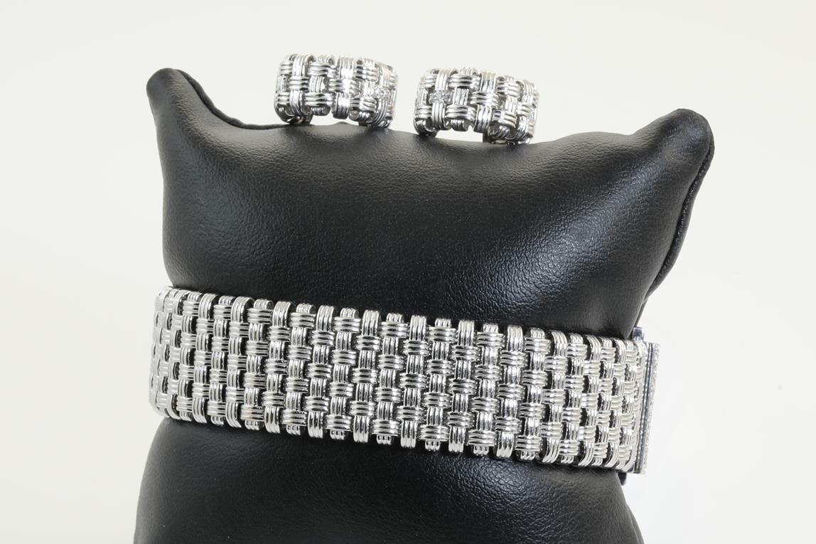 Roberto Coin bracelet & earring set with Diamonds totalling approximately 0.25cts (Estimated grading: F-G VS). 18ct white gold. Total weight 66.1g. Length: 18cm. With certificate #414189. (Pre-owned)