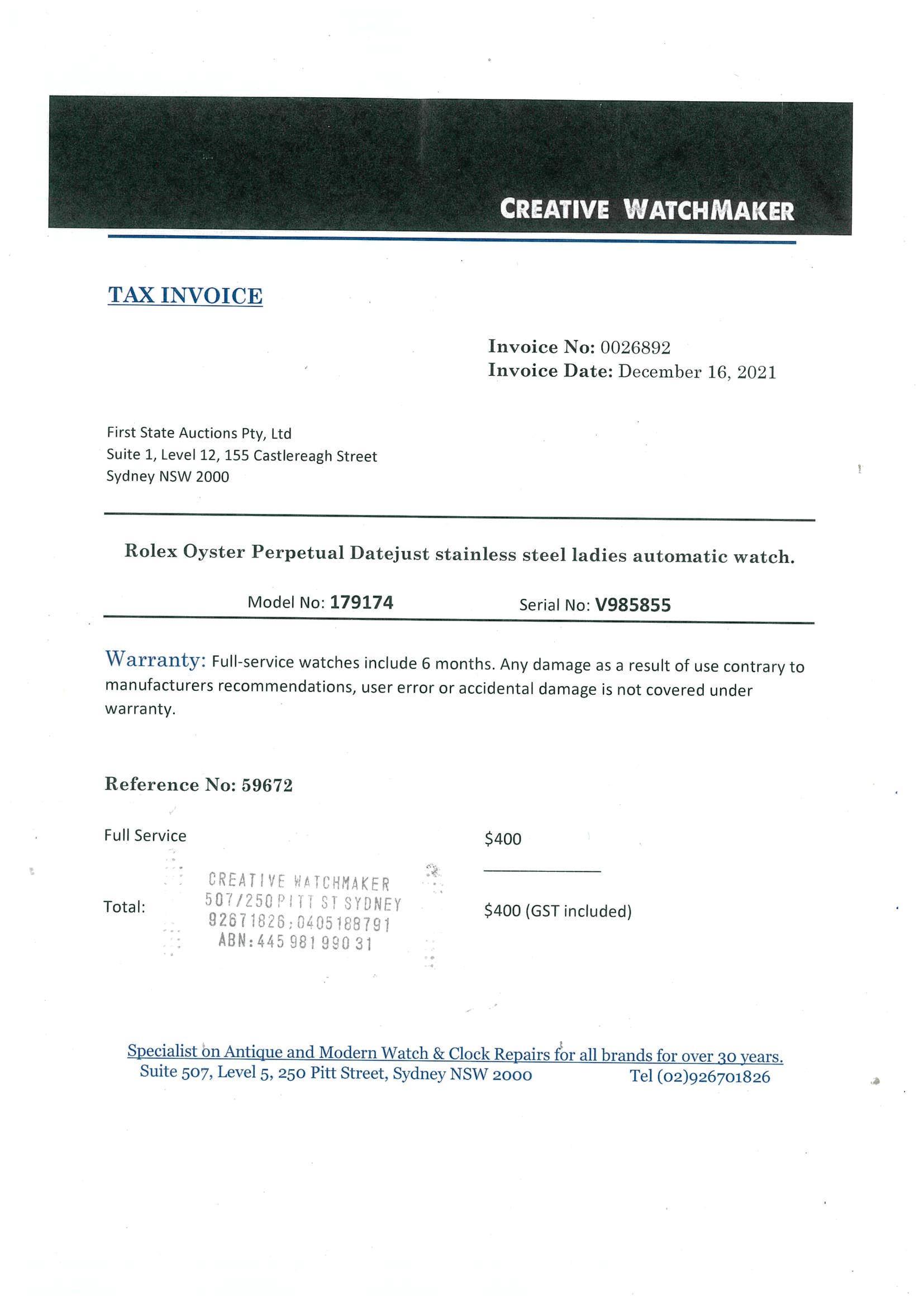 Rolex Datejust Ladies Watch 179174