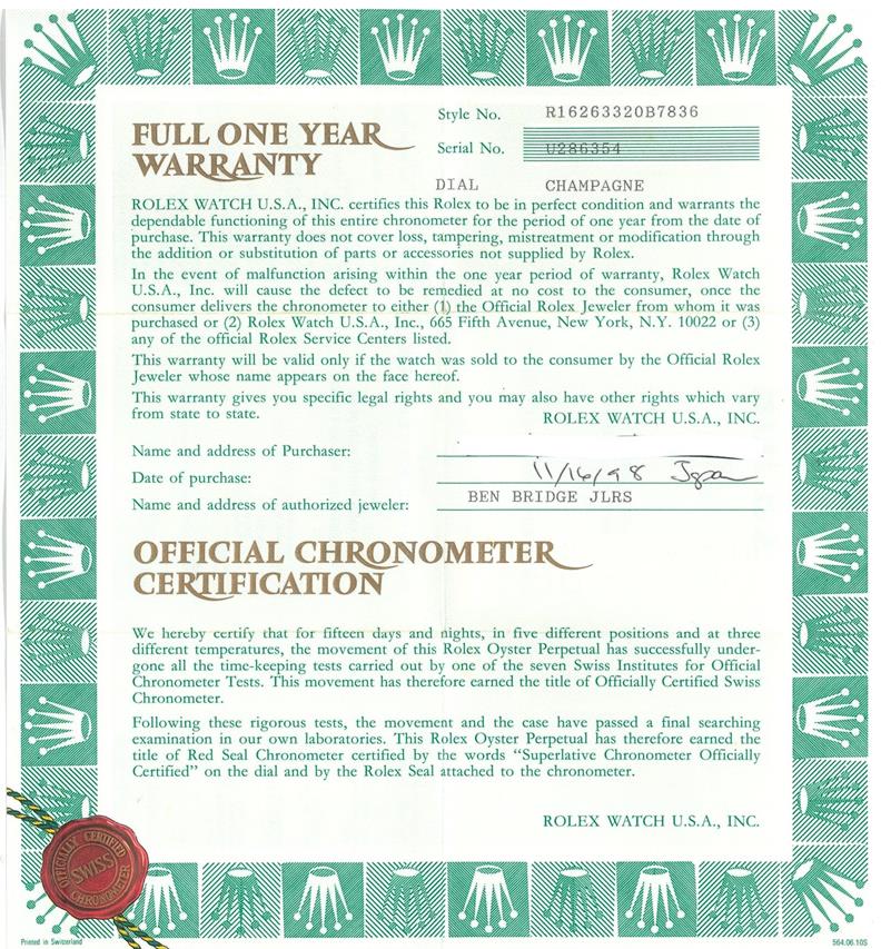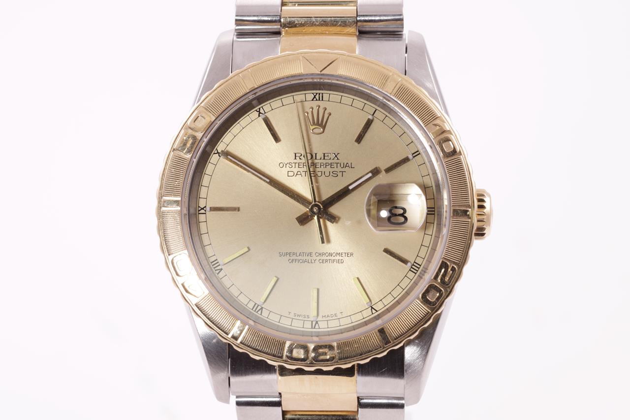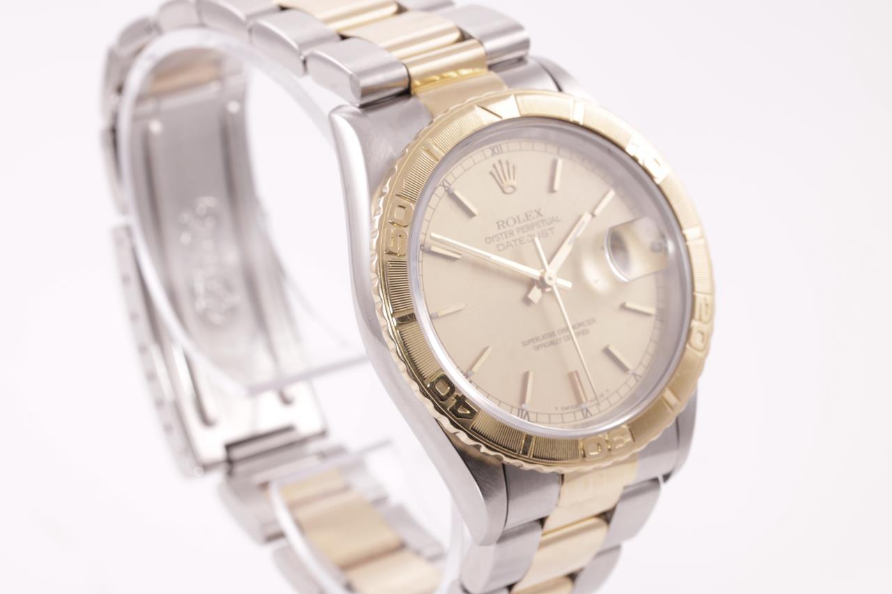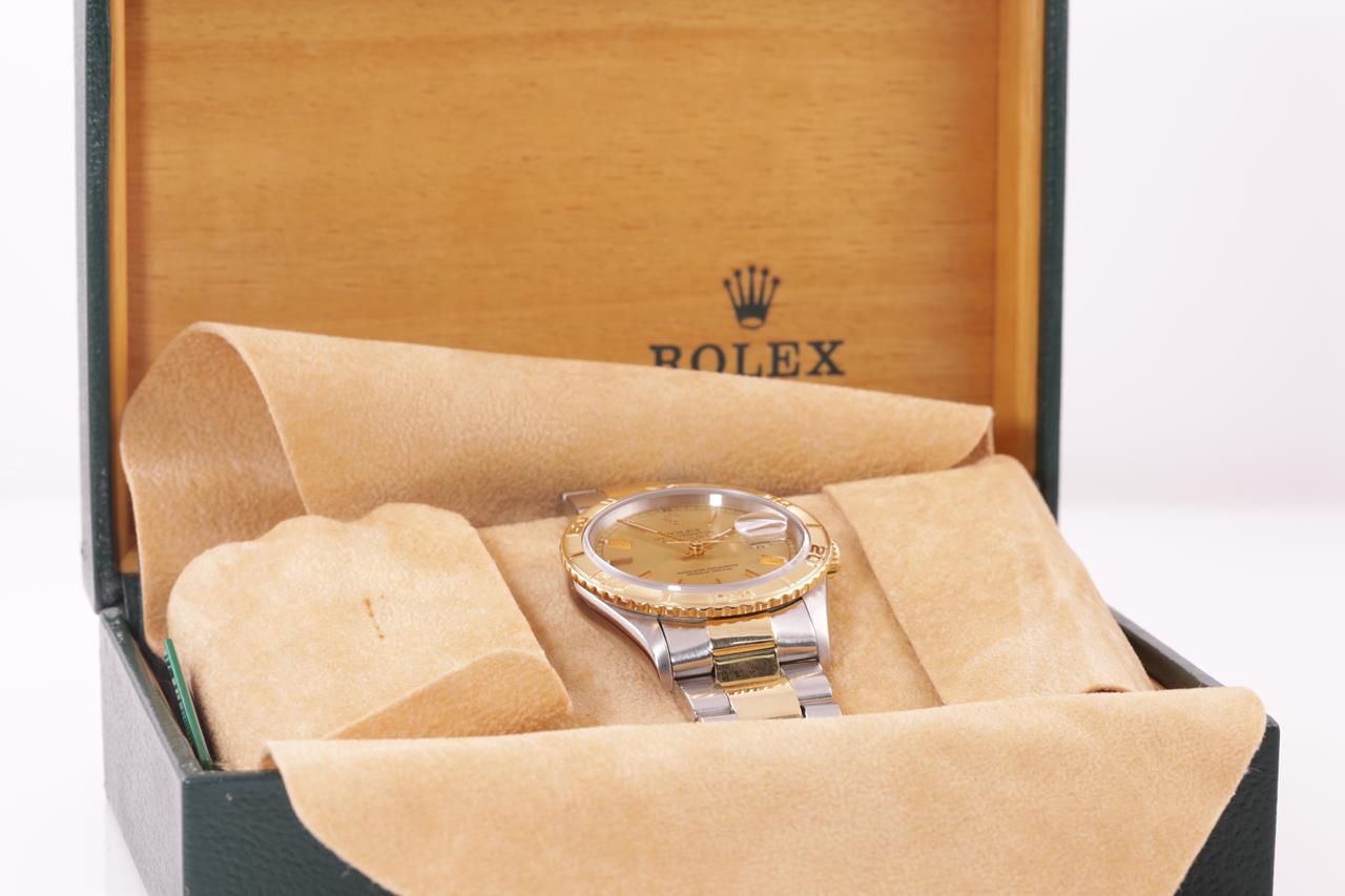 1809: Rolex Oyster Perpetual Datejust 18ct yellow gold and stainless steel automatic mens watch. Gold dial, date, wrist size: 18cm, case diameter: 36mm, Swiss made. Ref# 16263, Circa: 1997. With Rolex two-tone Oyster bracelet and clasp. With Certificate of Authenticity, Rolex guarantee certificate dated 16/11/98 and Rolex box. 3 month FSA warranty. (Pre-owned)