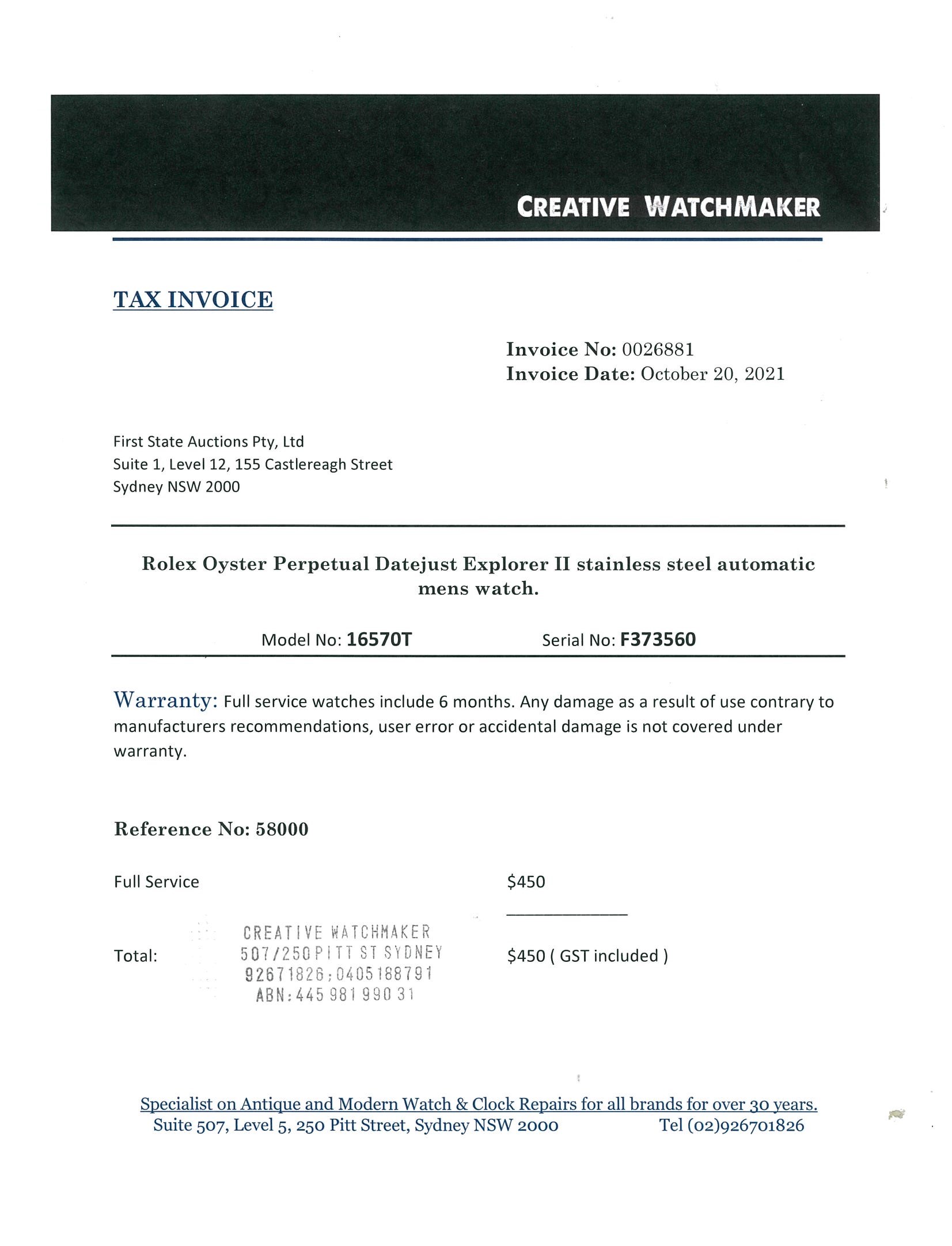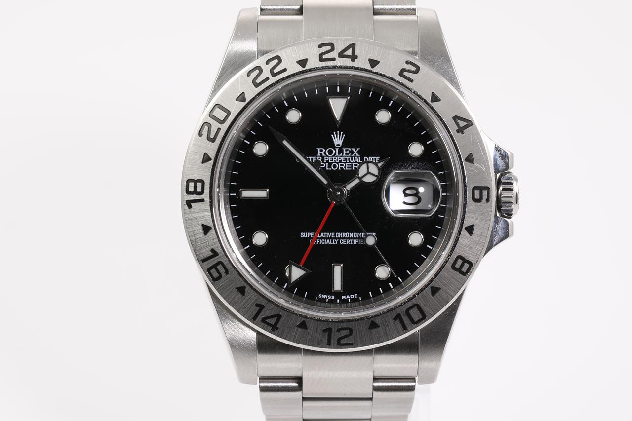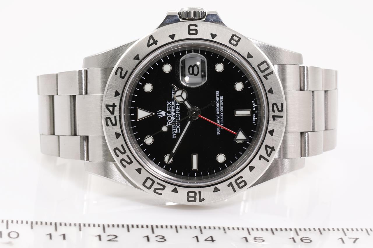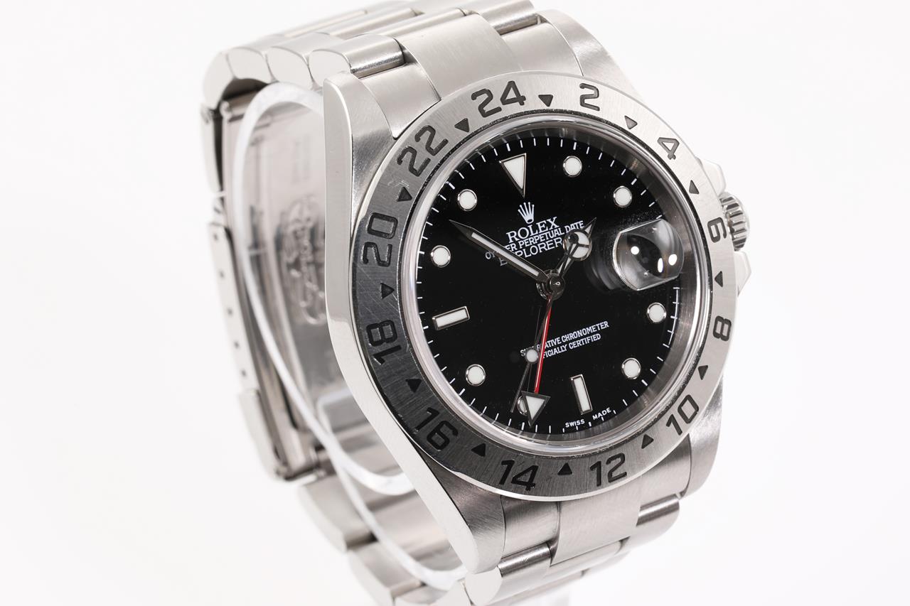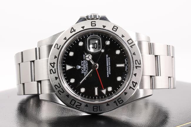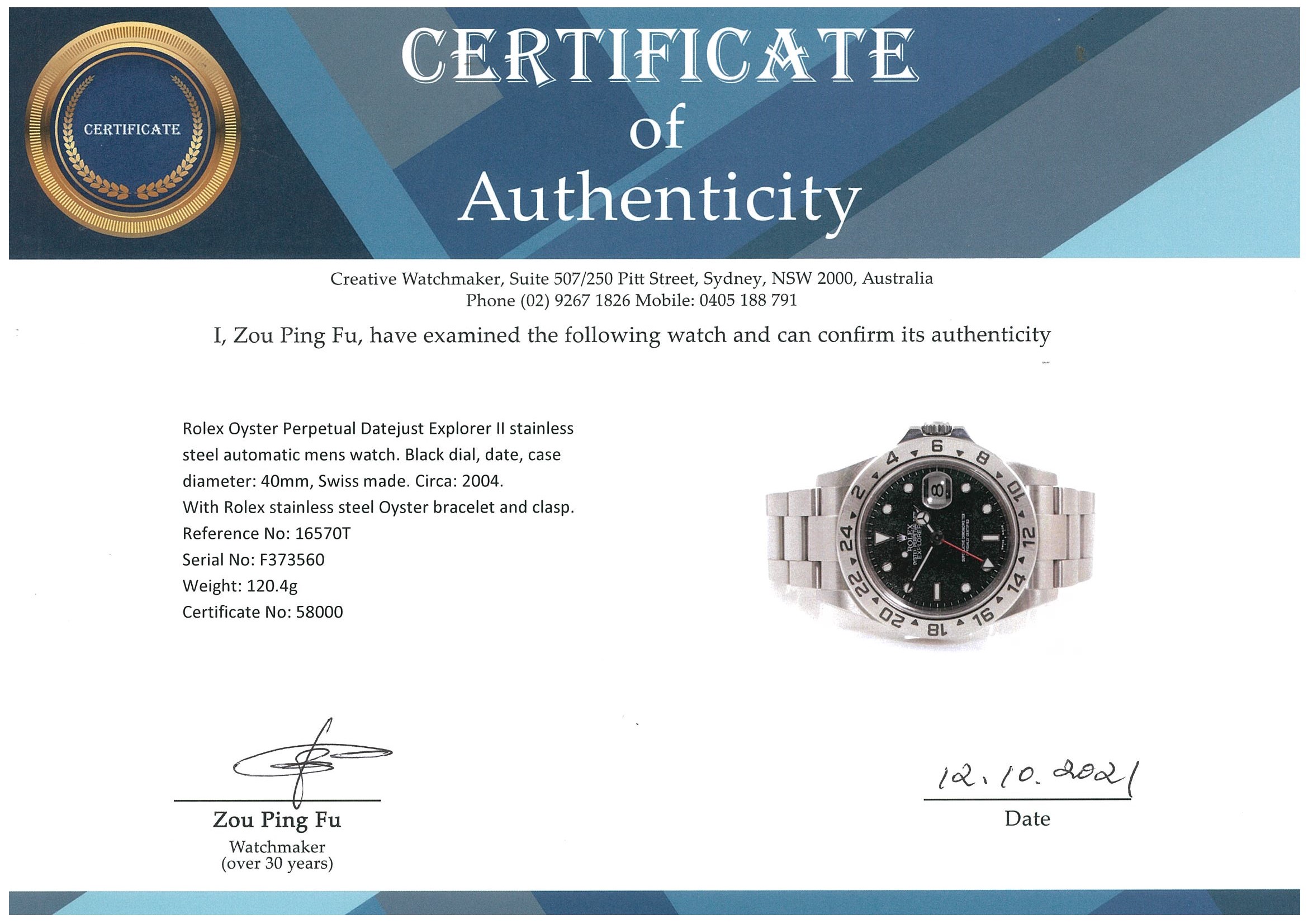 Rolex Oyster Perpetual Datejust Explorer II stainless steel automatic mens watch. Black dial, date, case diameter: 40mm, wrist size: 17cm, Swiss made. Ref# 16570T, Circa: 2004. With Rolex stainless steel Oyster bracelet and clasp. With certificate of authenticity and Rolex box. 6 month Creative watchmaker warranty from the date of full service. (Pre-owned)