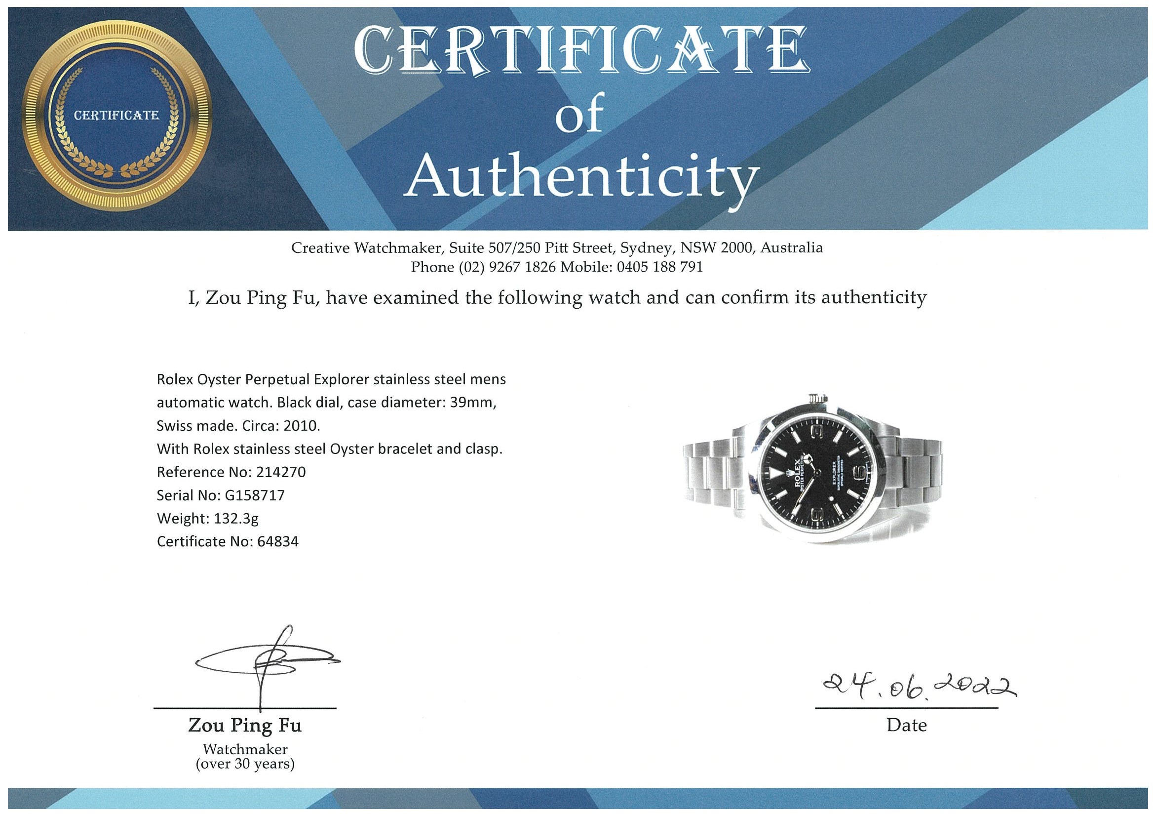 Rolex Explorer Mens Watch 214270 | First State Auctions