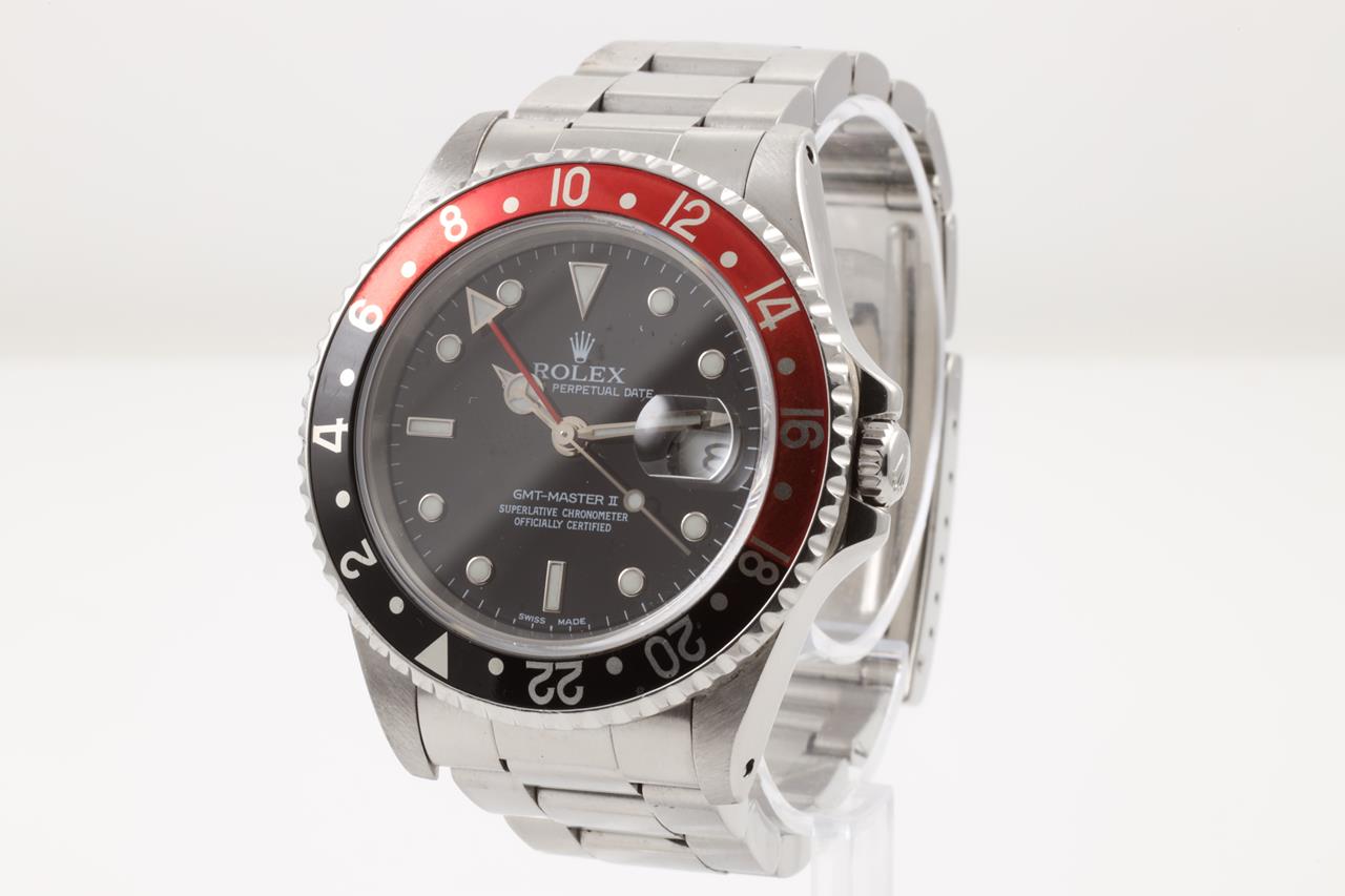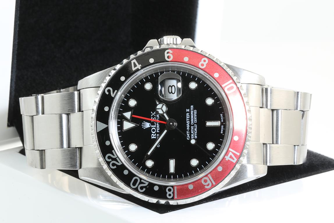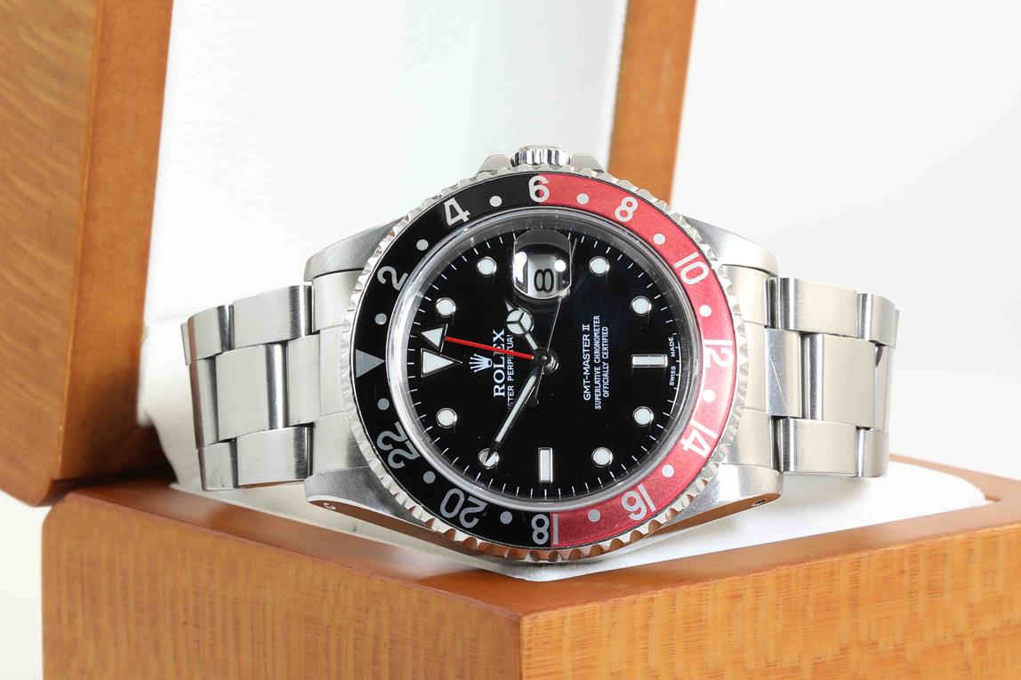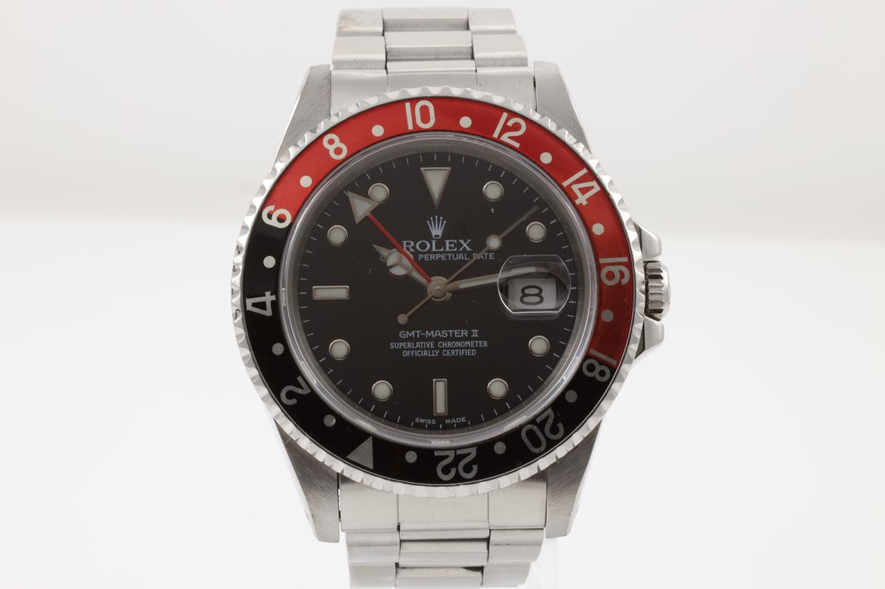 Rolex GMT Master II Coke stainless steel automatic mens watch. Black dial, date, case diameter: 40mm, wrist size: 16.5cm. Ref# 16710, Circa: 1991, Swiss made. With Rolex Oyster stainless steel bracelet and clasp. With rolex warranty card dated 25/6/2013 inside Rolex box. With certificate of Authenticity and 3 month FSA warranty. (Pre-owned)