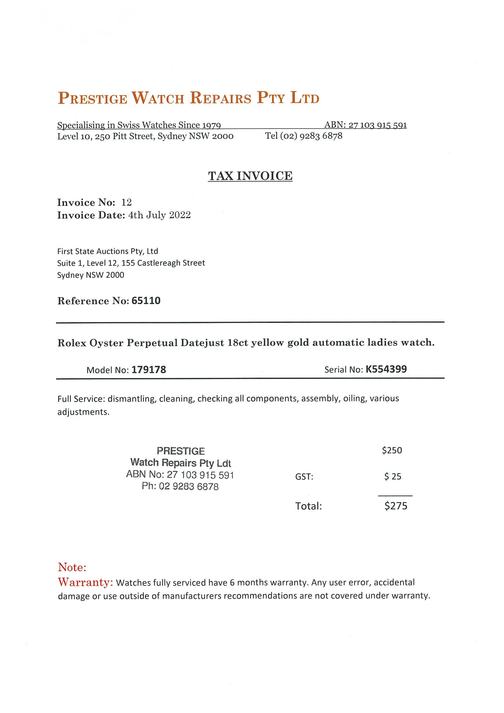 Rolex Ladies Watch 179138 | First State Auctions