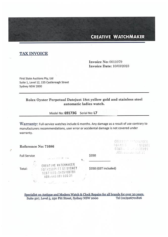 Rolex Oyster Perpetual Datejust Watch 69173G | First State Auctions