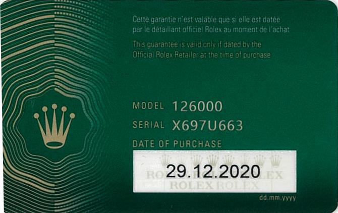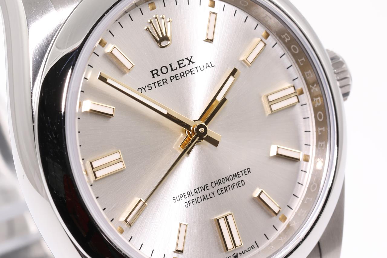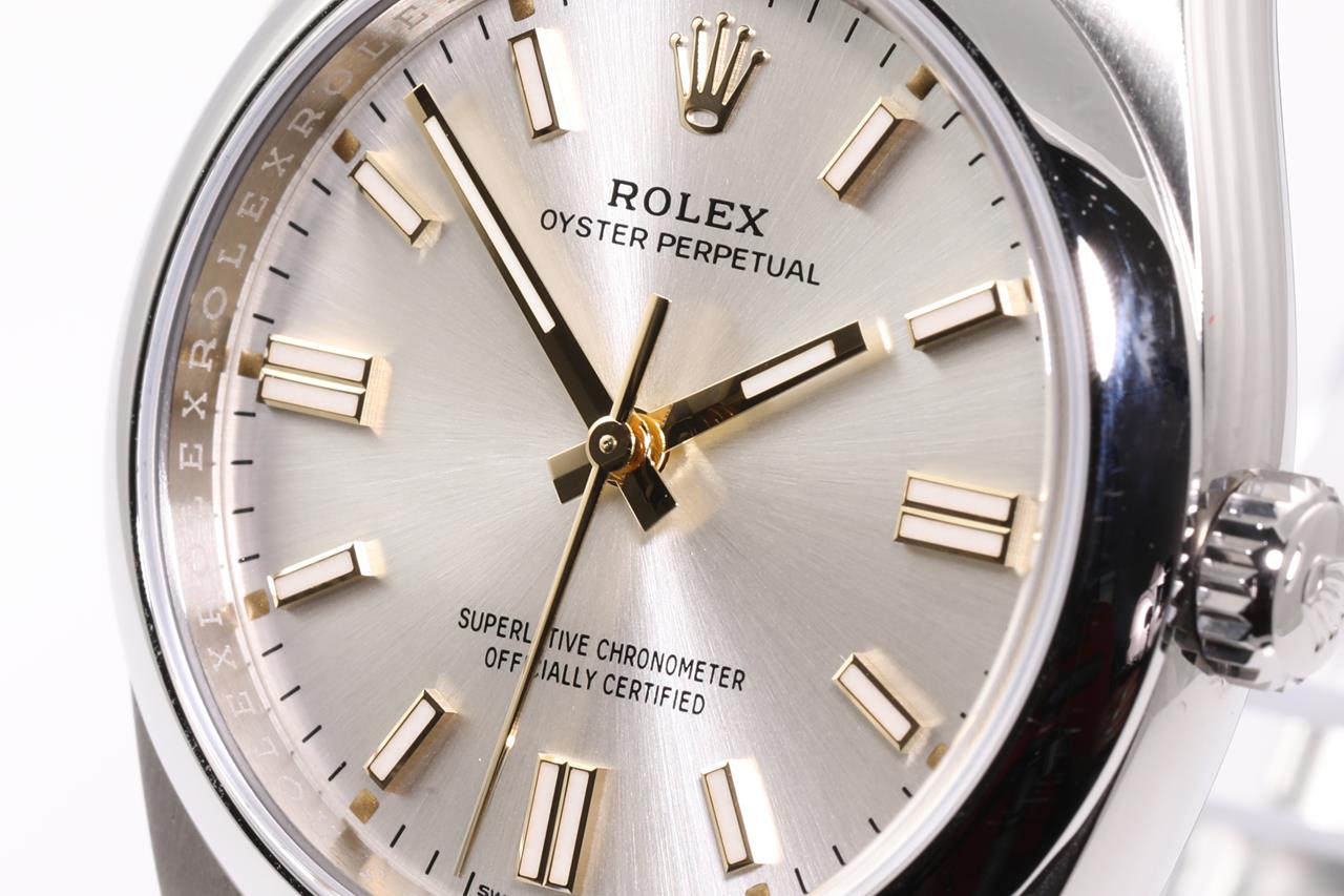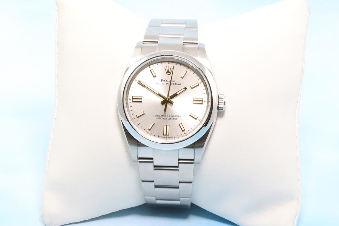 Rolex Oyster Perpetual stainless steel automatic mens watch. Silver dial, case diameter: 36mm, wrist size: 17.5cm, Swiss made. Ref# 126000. Circa: 2011-2021. With Rolex stainless steel Oyster bracelet and clasp. With certificate of authenticity, Rolex international guarantee certificate card and Rolex box. 3 month FSA warranty. (Pre-owned)