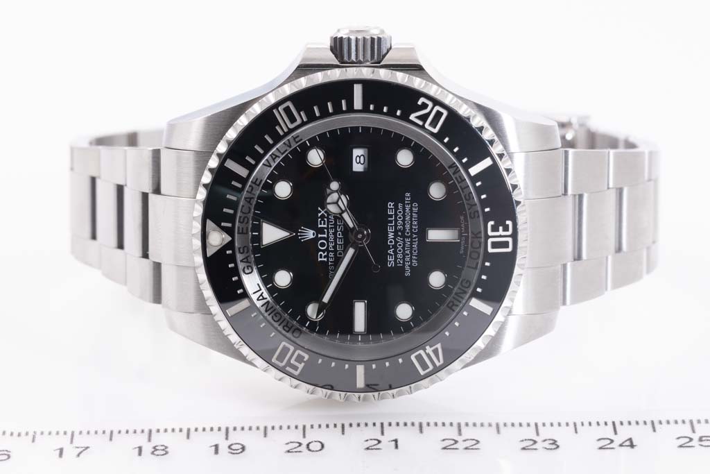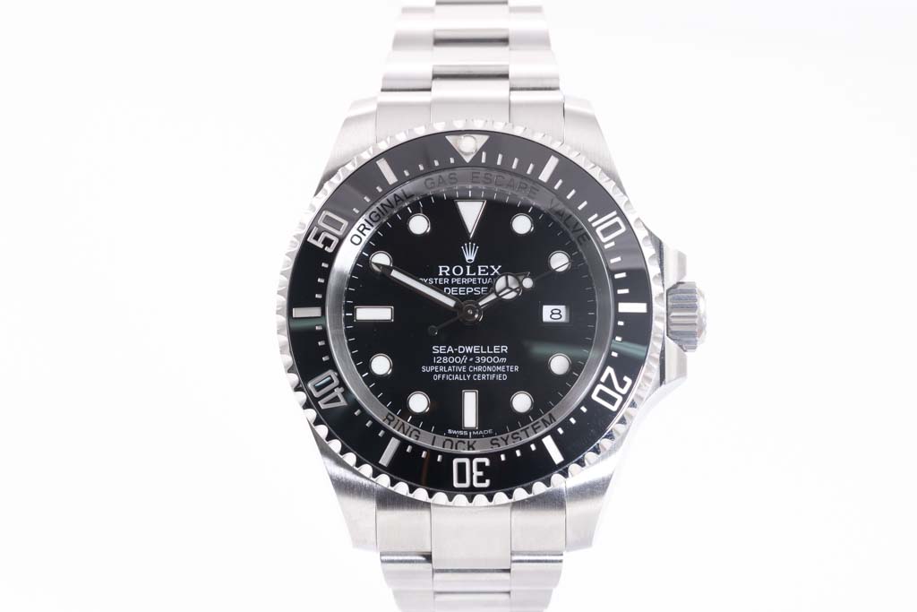 Rolex Sea Dweller Deepsea stainless steel automatic mens watch. Black dial, date, case diameter: 44mm, wrist size: 20.5cm, Swiss made. Ref# 116660. Circa: 2011-2023. With Rolex stainless steel Oyster bracelet and clasp. With Certificate of Authenticity, Rolex International Guarantee Card dated 18/03/2018 and Rolex box. 3 month FSA warranty (Pre-owned).