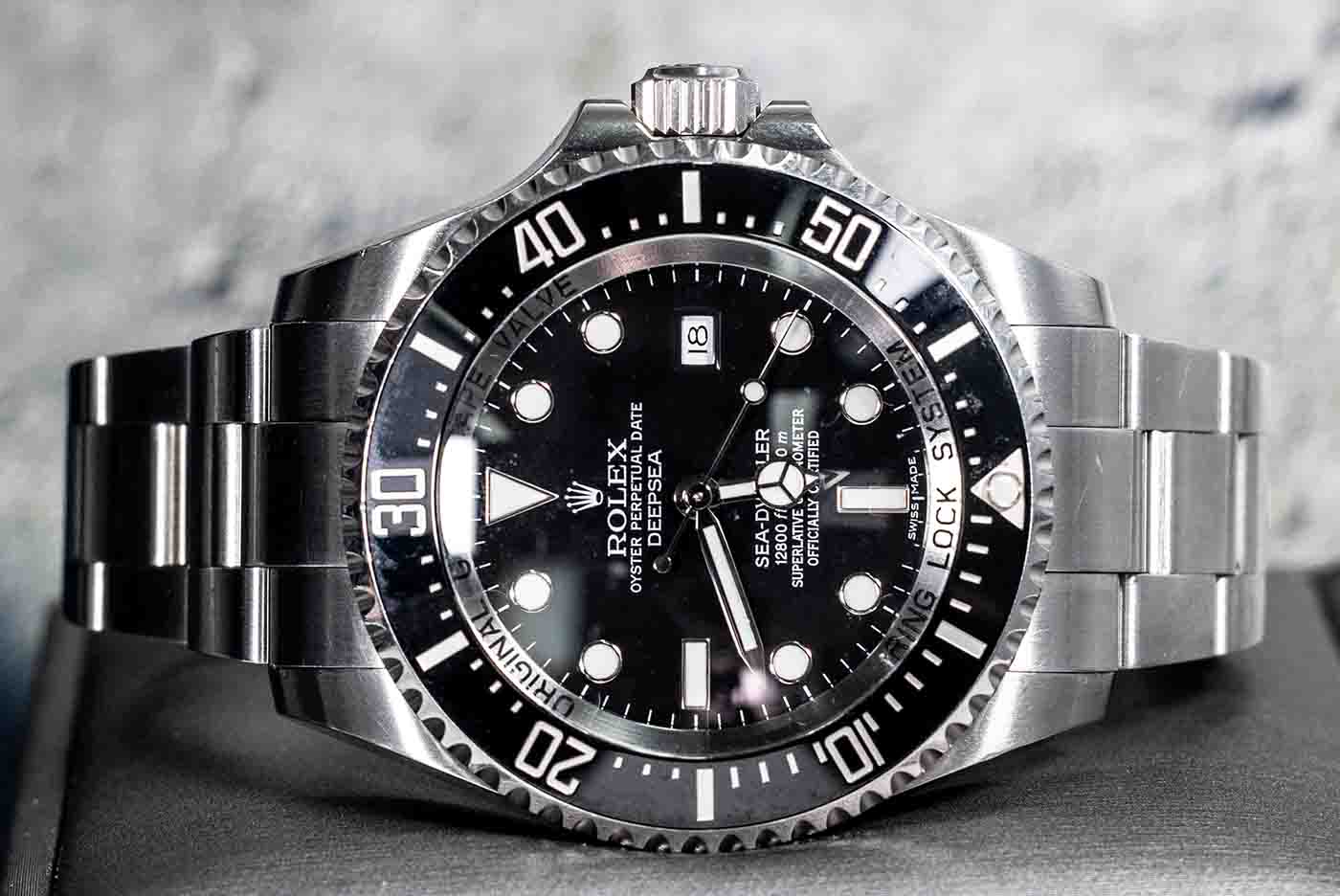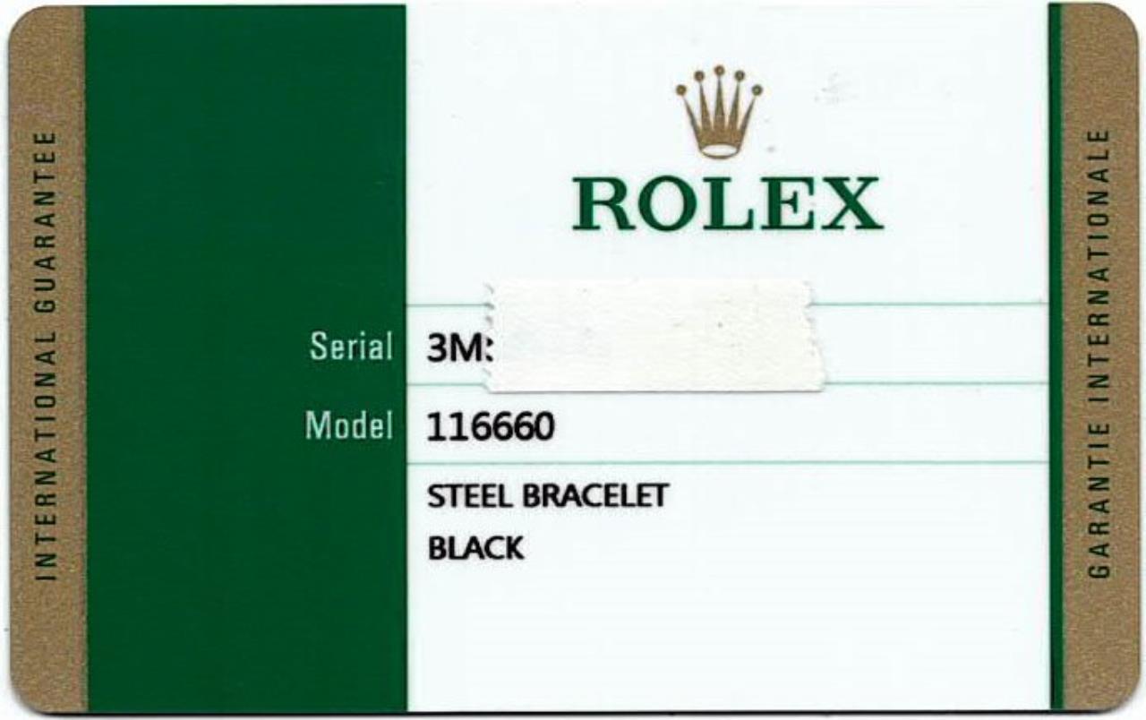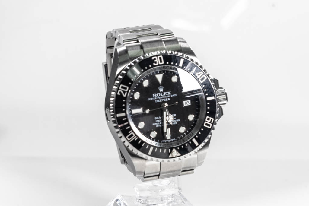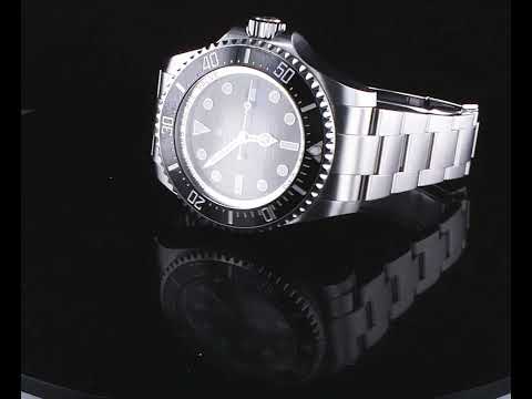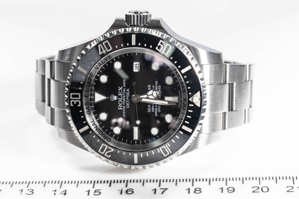 Rolex Sea Dweller Deepsea stainless steel automatic mens watch. Black dial, date, case diameter: 44mm, wrist size: 16cm, Swiss made. Ref# 116660. Circa: 2011-2022. With Rolex stainless steel oyster bracelet and clasp. With Certificate of Authenticity, Rolex International Guarantee Card dated 02/11/2016 and Rolex box. 3 month FSA warranty (Pre-owned).
