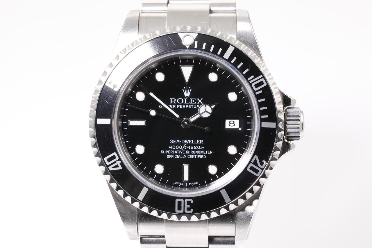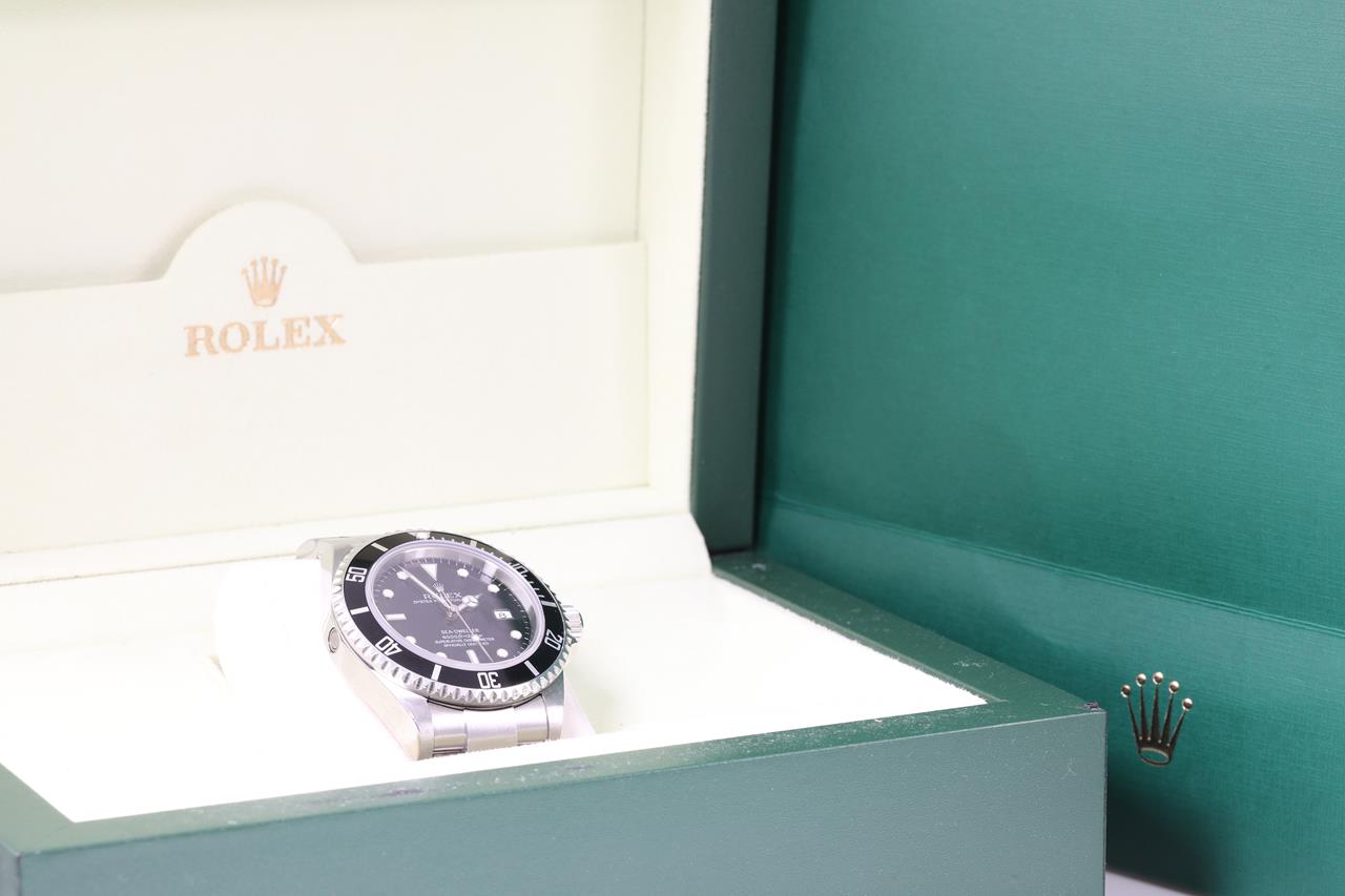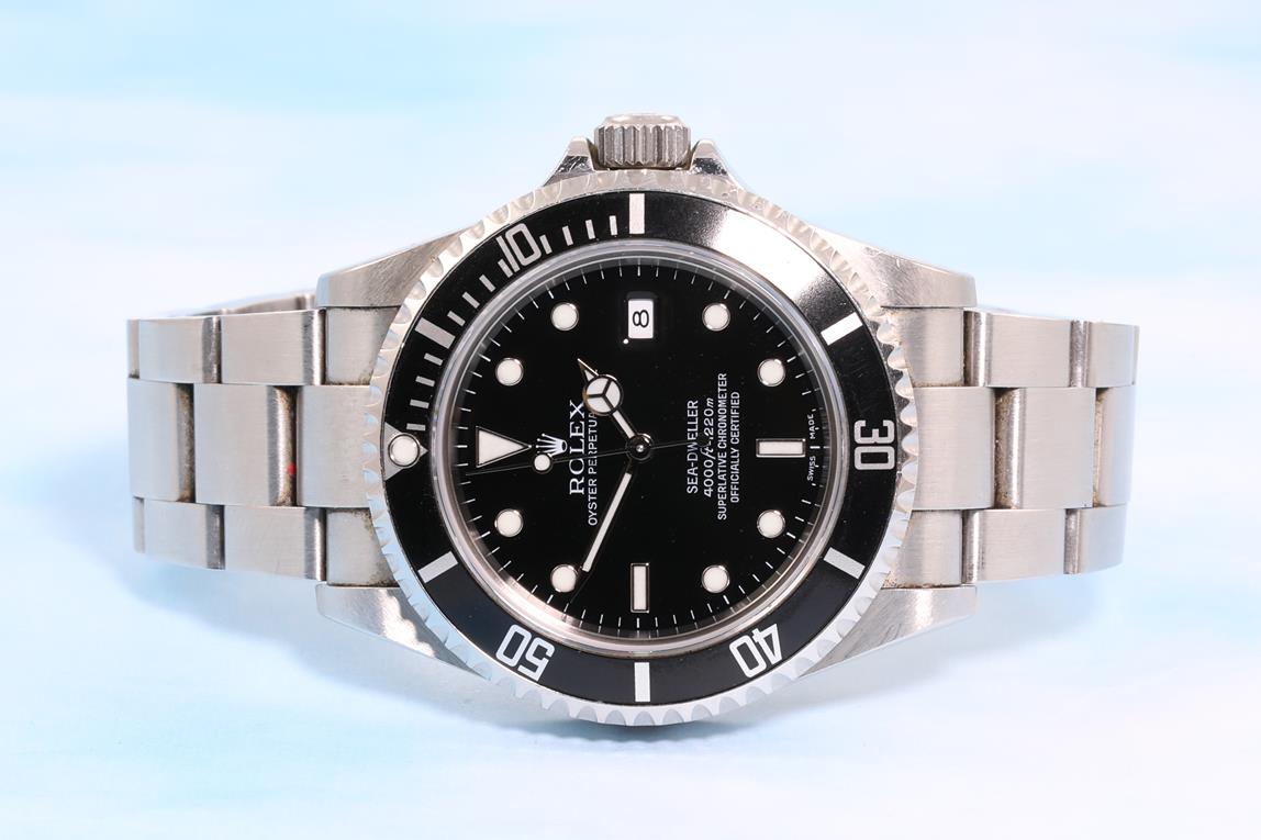 Rolex Oyster Perpetual Date Sea-Dweller stainless steel automatic mens watch. Black dial, date, case diameter: 40mm, wrist size: 17cm, Swiss made. Ref# 16600T, Circa: 2006 or 2007. With Rolex Oyster bracelet & clasp. With certificate of authenticity and Rolex box with Rolex gift shopping bag. 3 month FSA warranty. (Pre-owned)