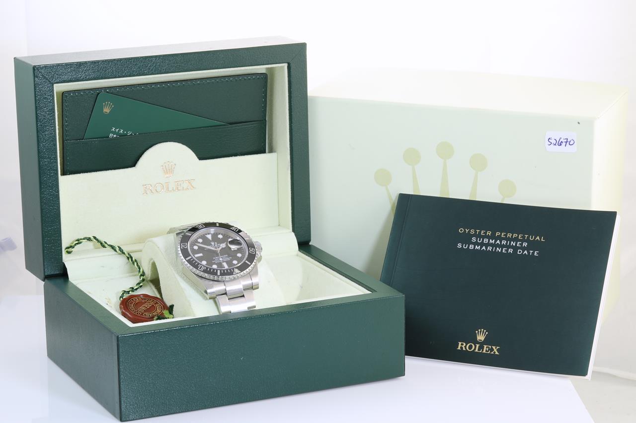 Rolex Submariner Date stainless steel automatic mens watch. Black dial, date, case diameter: 40mm, wrist size: 20.5cm, Swiss made. Ref# 116610LN. Circa 2002. With Rolex Oyster bracelet and clasp. With Certificate of authenticity. With Rolex international guarantee card inside Rolex box. 3 month FSA warranty. (Pre-owned)