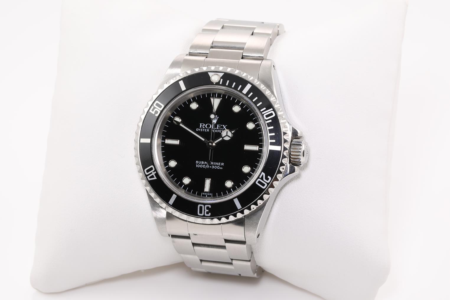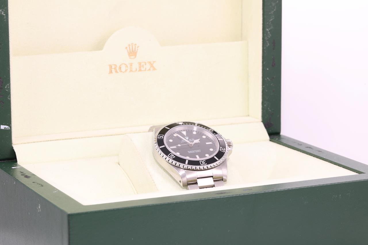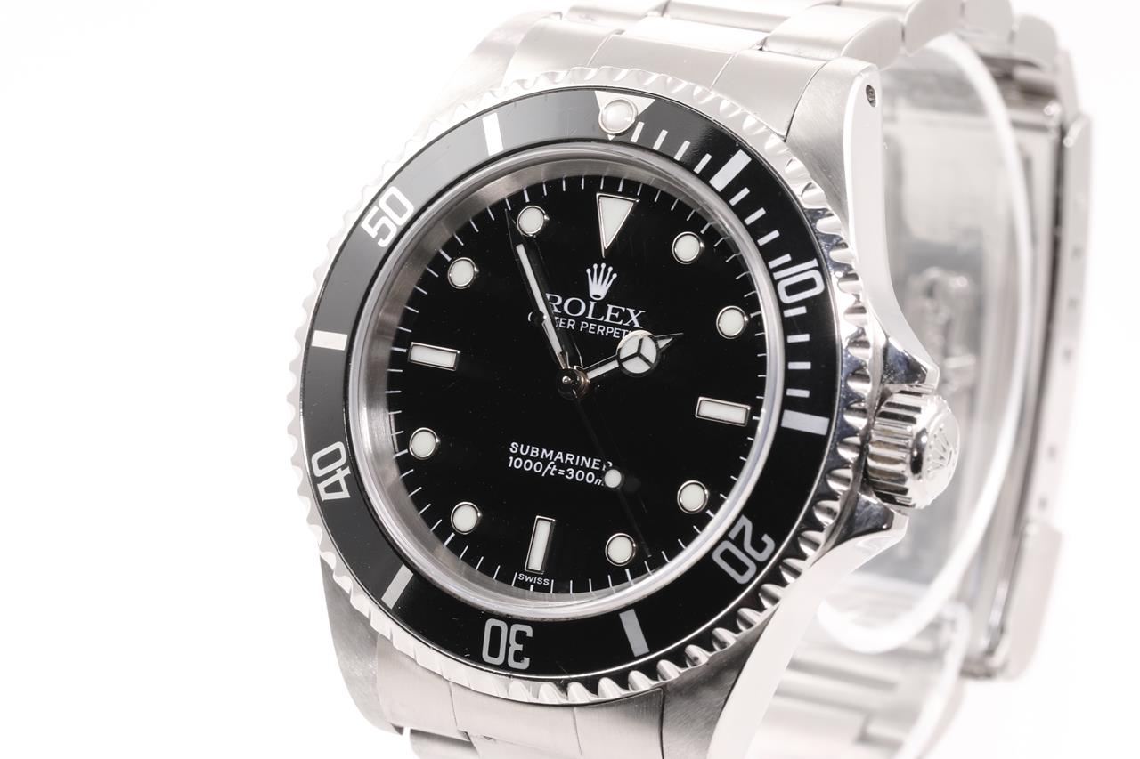 Rolex Submariner stainless steel automatic mens watch. Black dial, case diameter: 40mm, wrist size: 16cm, Swiss made. Ref# 14060, Circa: 1997. With Rolex stainless steel Oyster bracelet and clasp. With certificate of authenticity and Rolex box. 3 month FSA warranty. (Pre-owned)