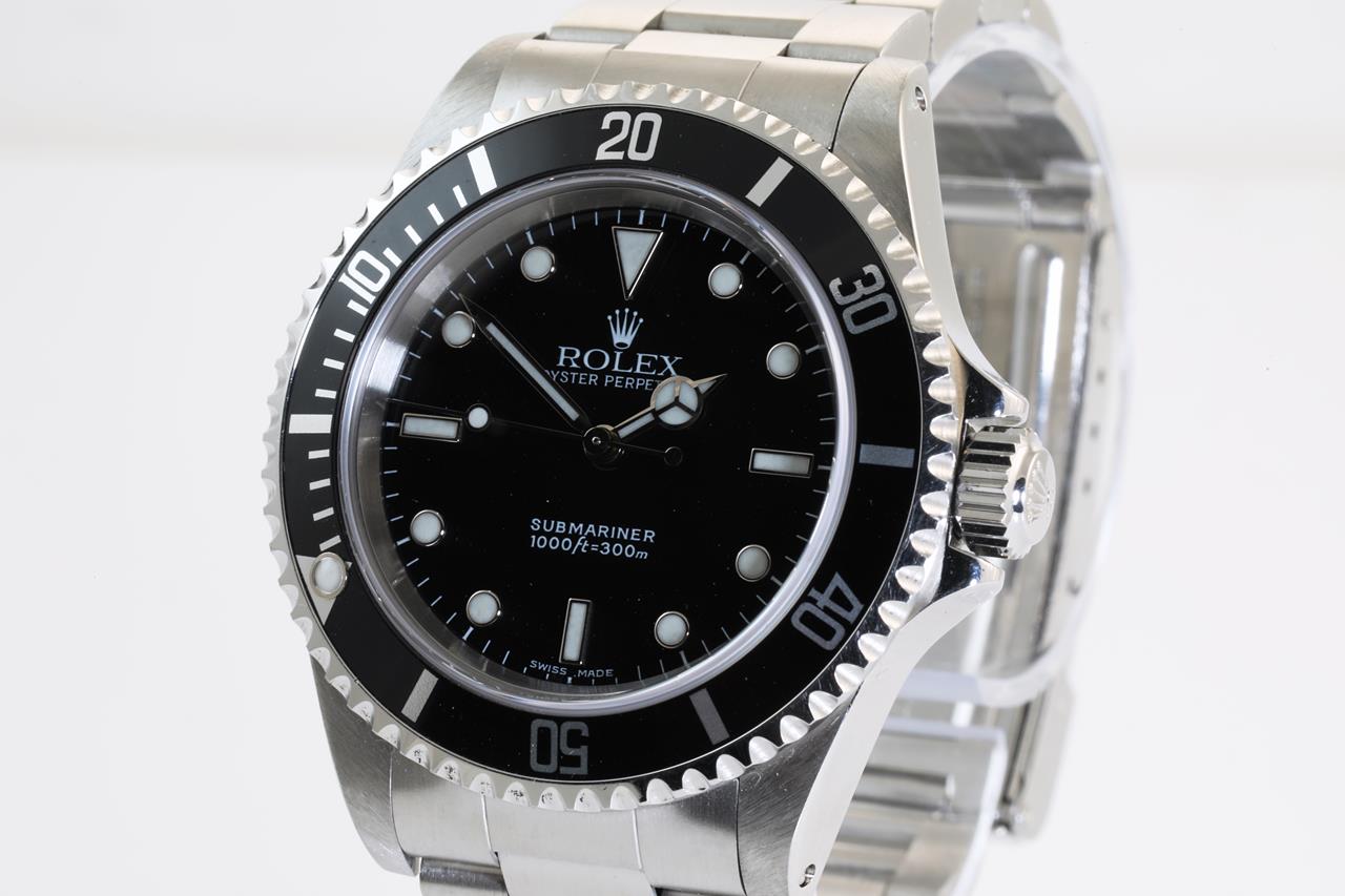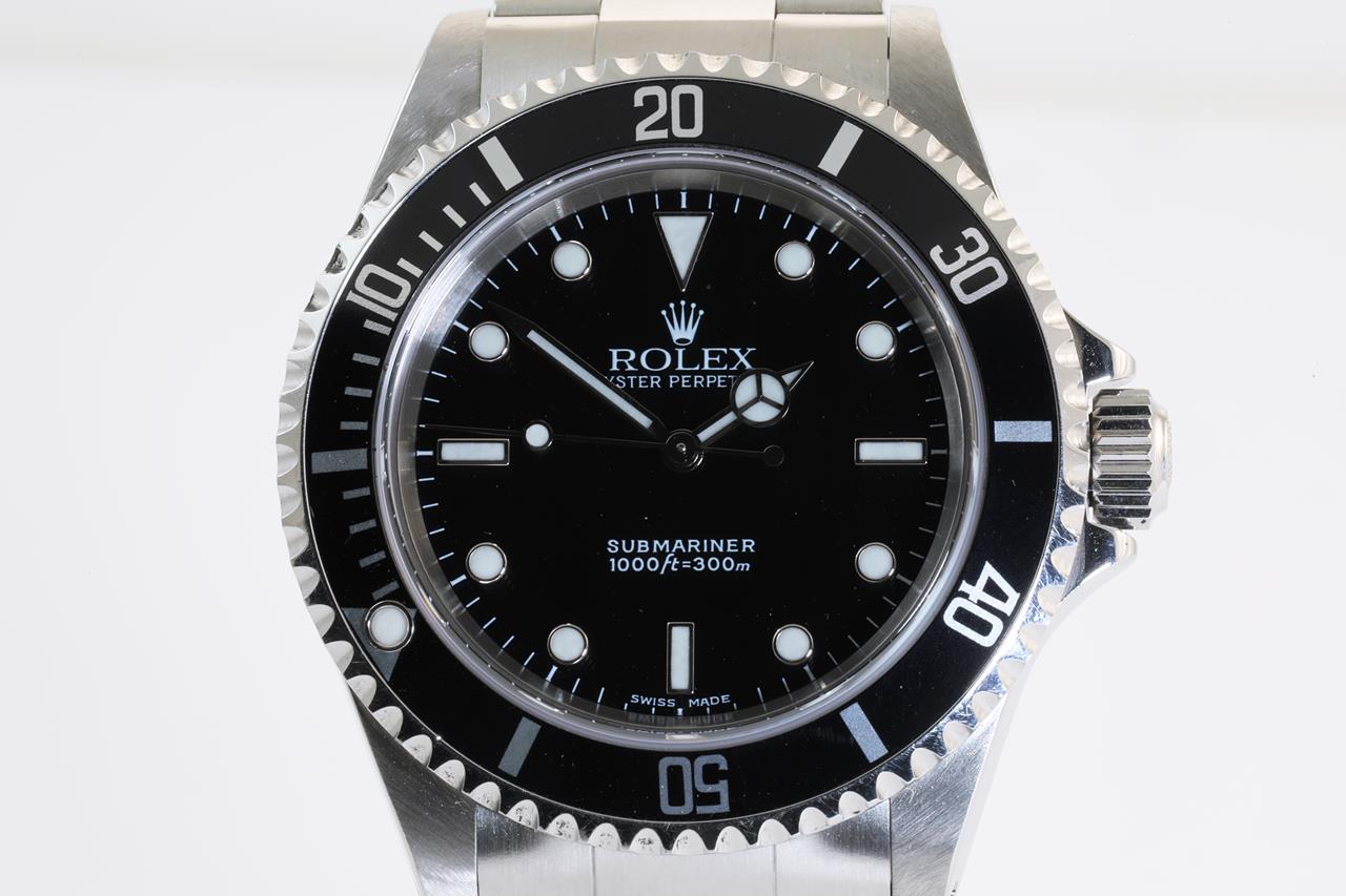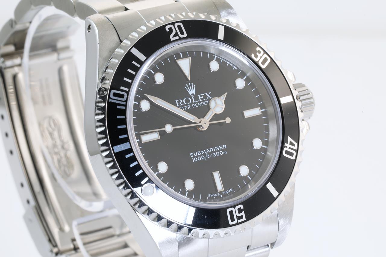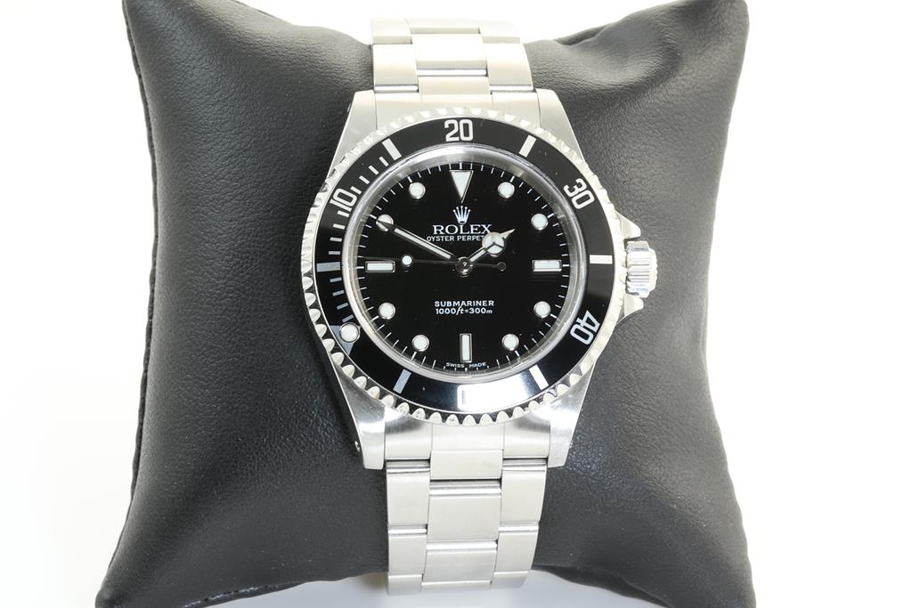 Rolex Oyster Perpetual Submariner stainless steel mens automatic watch. Black dial, case diameter: 40mm, wrist size: 16.5cm, Swiss made. Ref# 14060M, Circa: 2002. With Rolex Oyster bracelet and clasp. With certificate of authenticity, Rolex box & 3 month FSA warranty. (Pre-owned)