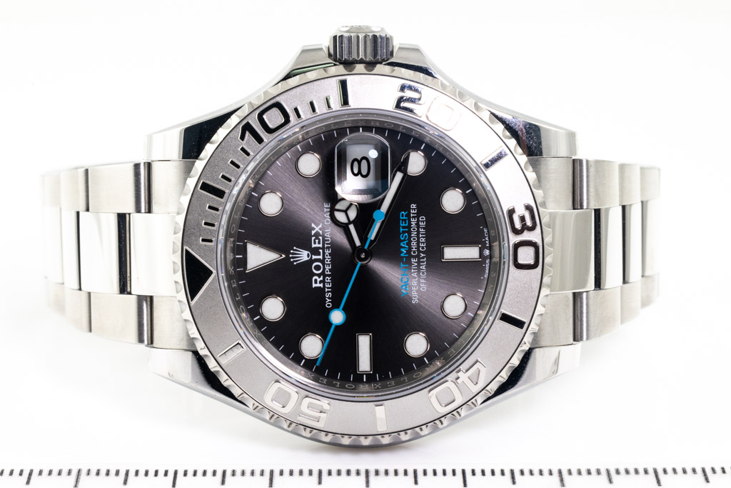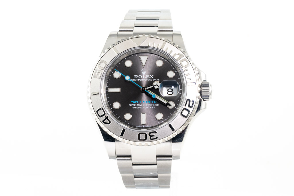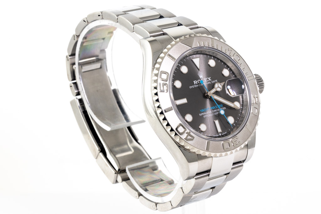 Rolex Yacht-Master stainless steel and platinum automatic mens watch. Slate dial, date, case diameter: 40mm, wrist size: 19.5cm, Swiss made. Ref# 126622. Circa: 2011-2023. With Rolex stainless steel Oyster bracelet and clasp. With Certificate of Authenticity, Rolex International Guarantee card dated 15/03/2022 and Rolex box. Balance of 5 year manufacturer warranty applies (Pre-owned)