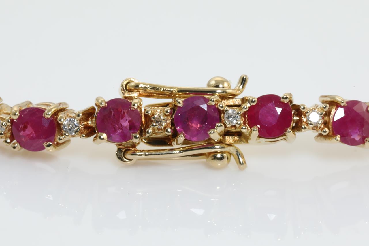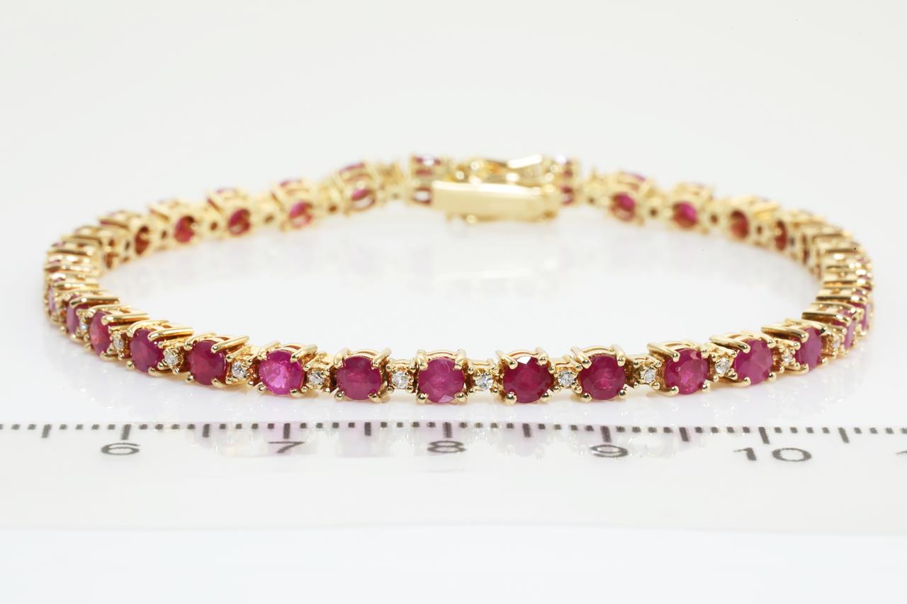 Ruby and Diamond bracelet with Rubies totalling approximately 5.10cts and Diamonds totalling approximately 0.17cts. 18ct yellow gold. Length: 17cm. Weight: 10.9g (Pre-owned)