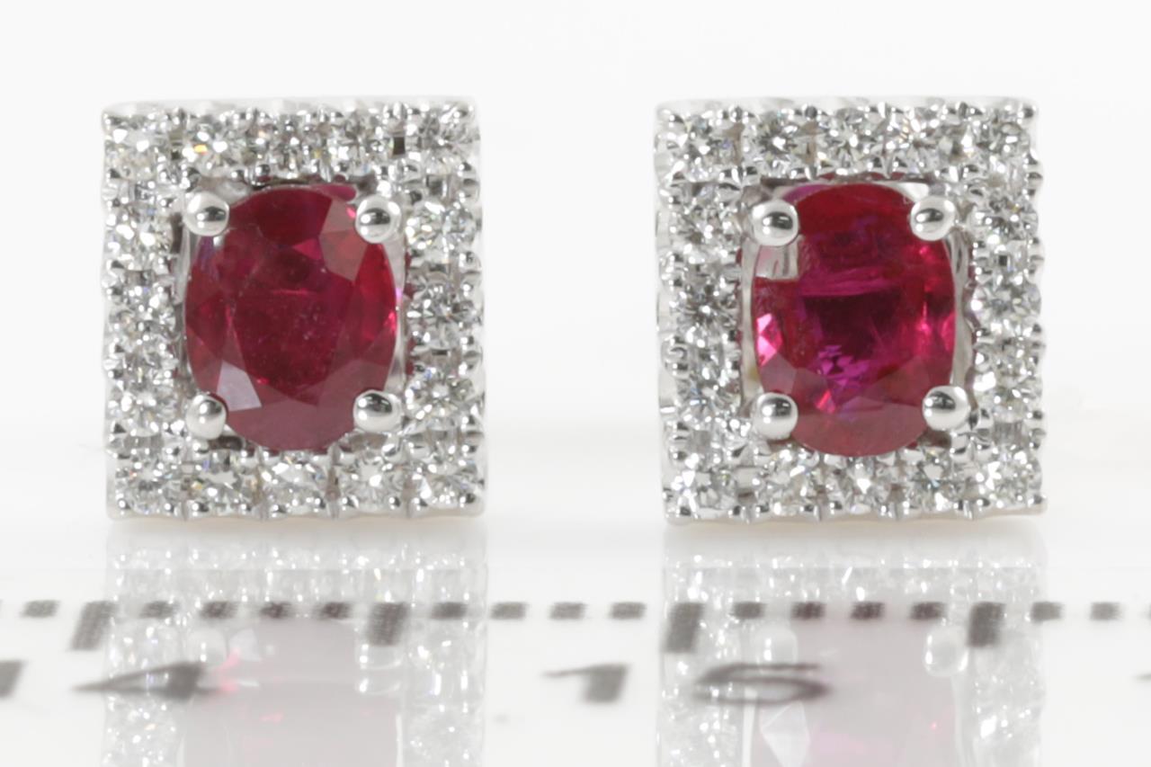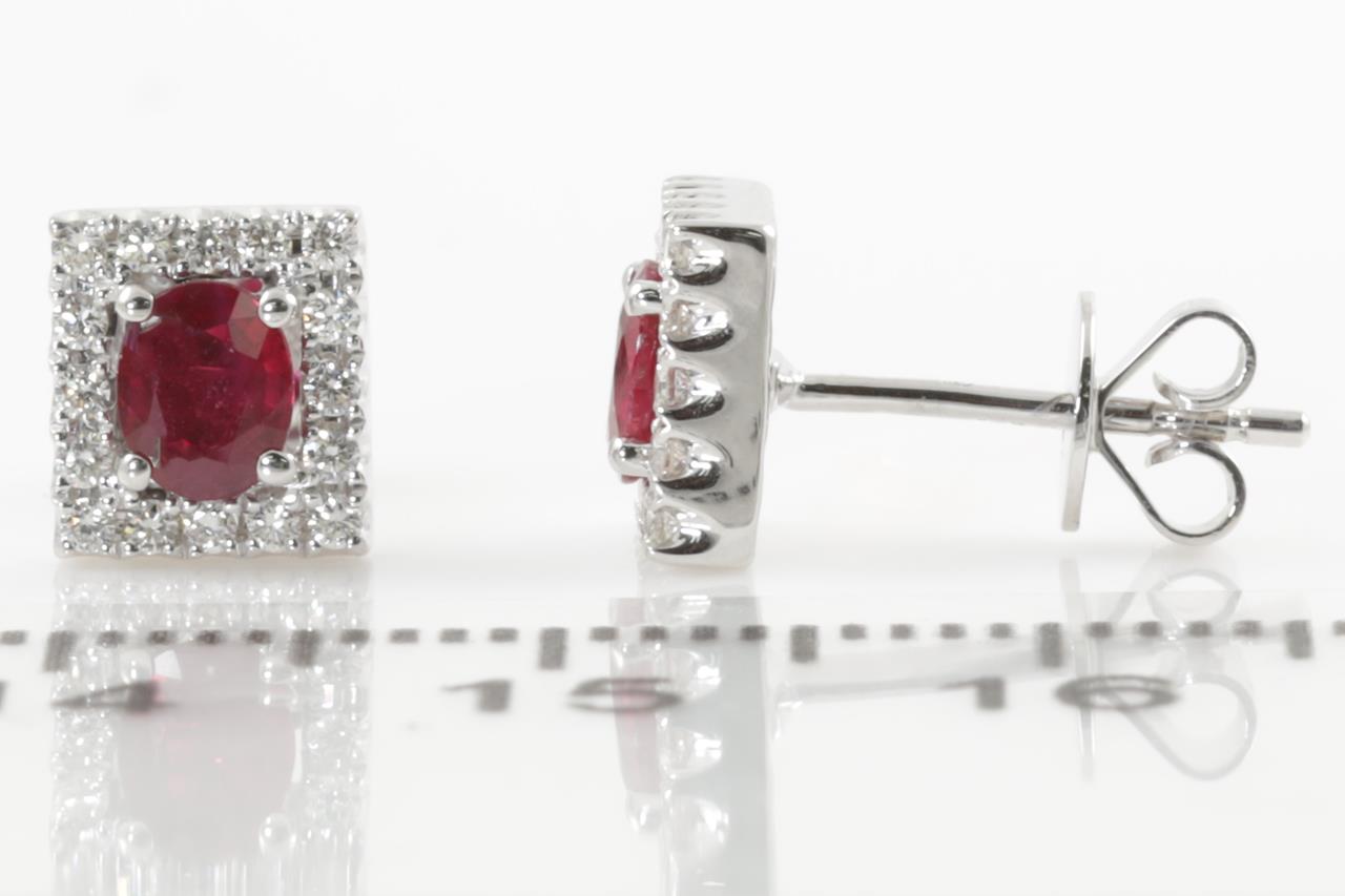 Ruby and Diamond earrings with oval Rubies totalling 0.63cts and Diamonds totalling 0.20cts. 18ct white gold. Weight: 2.5g. (New)