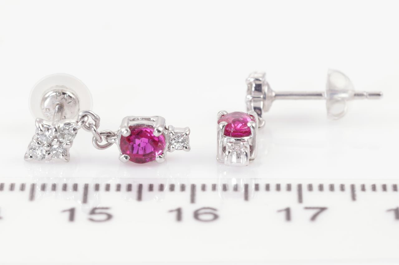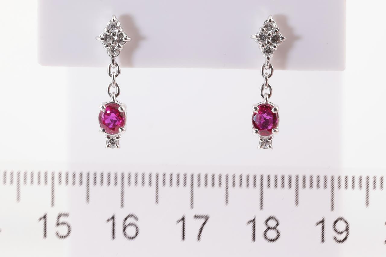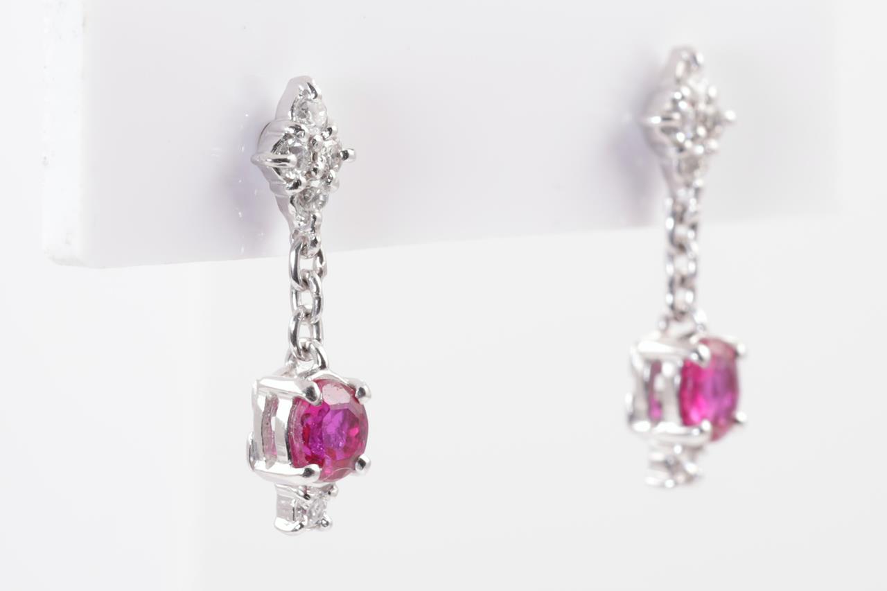 Ruby and Diamond earrings with oval rubies totalling 0.69cts and Diamonds totalling 0.20cts. Platinum with 14ct gold & silicon backs. Weight: 2.7g (Pre-owned)