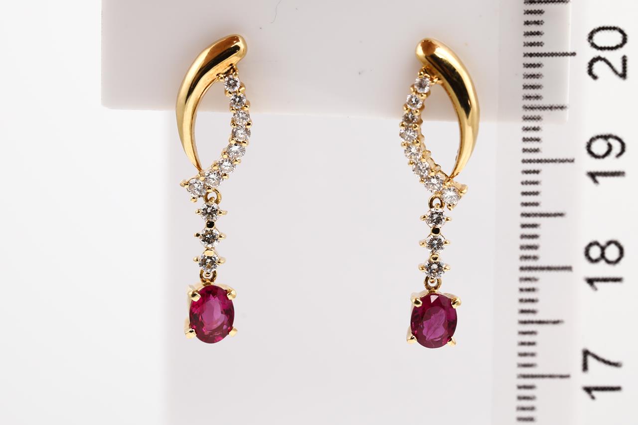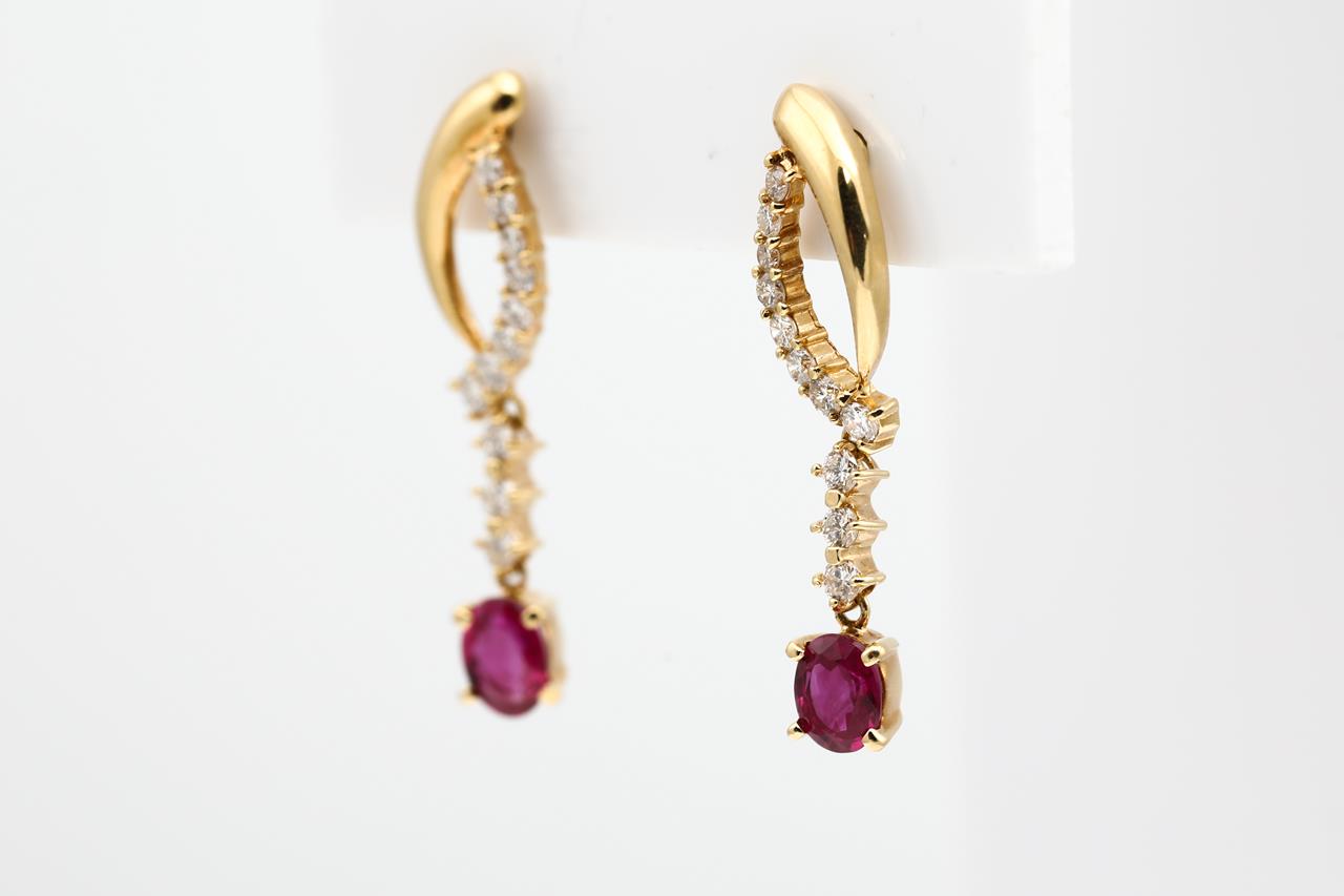 Ruby and Diamond Earrings with oval cut Rubies totalling 1.15cts and round Diamonds totalling 0.62cts (Estimated grading: G-H SI). 18ct yellow gold. Weight: 3.9g (Pre-owned)