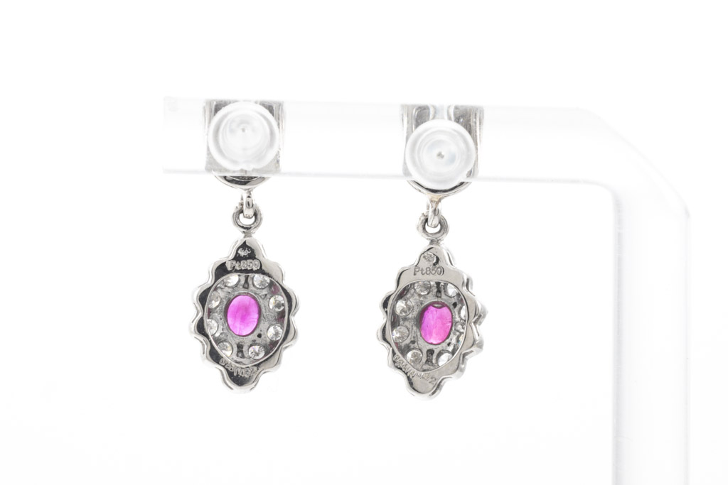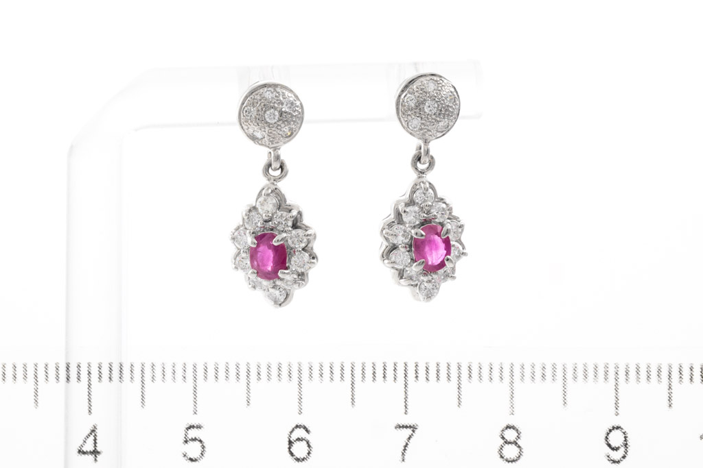 Ruby and Diamond earrings with Rubies totalling 0.57cts and Diamonds totalling 0.64cts (Estimated grading: H SI-P1). Platinum. Weight: 5.7g. (Pre-owned)