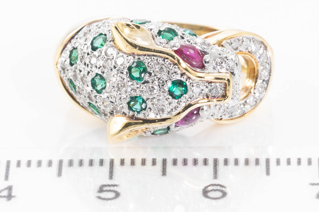 Ruby, Emerald and Diamond Panther Ring