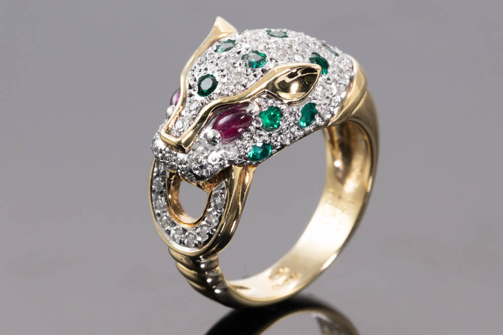 Ruby, Emerald and Diamond Panther Ring | First State Auctions