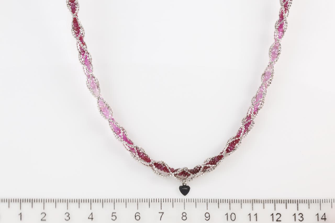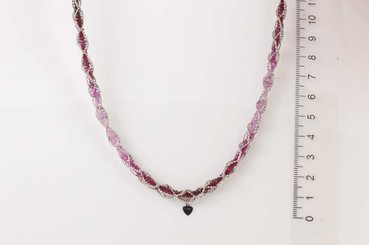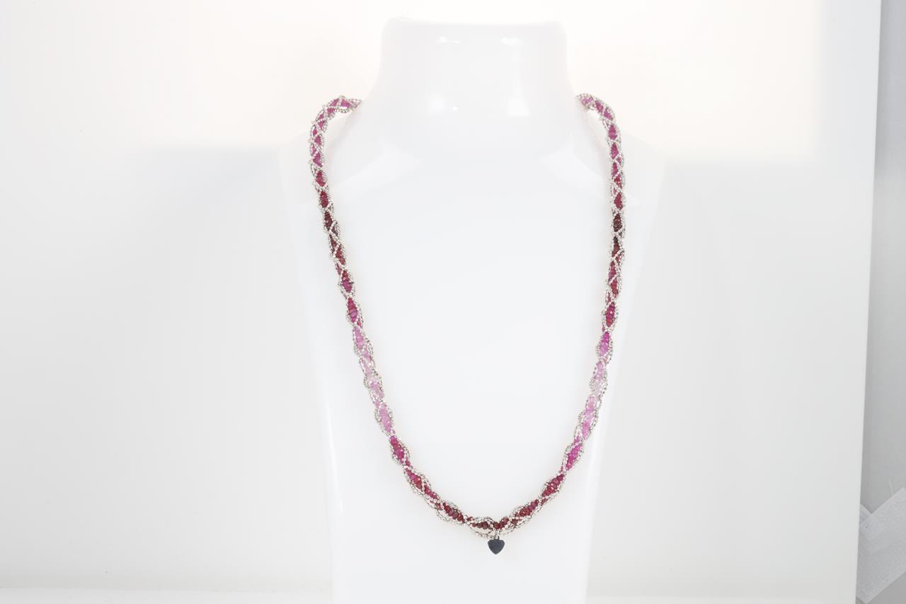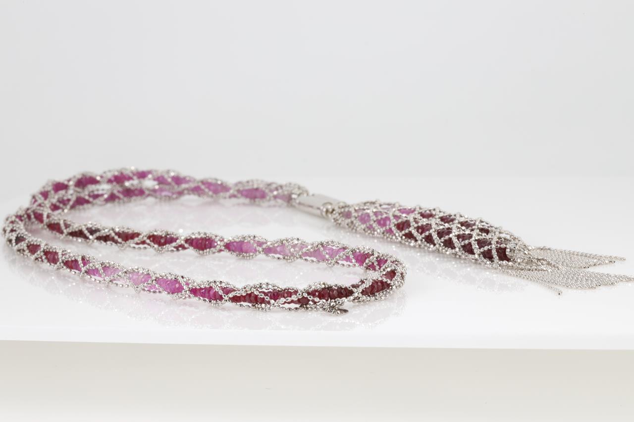 Ruby tassel necklace with Ruby beads and magnetic attachment. Length 50cm. 18ct white gold. Weight: 33.1g. (Pre-owned)
